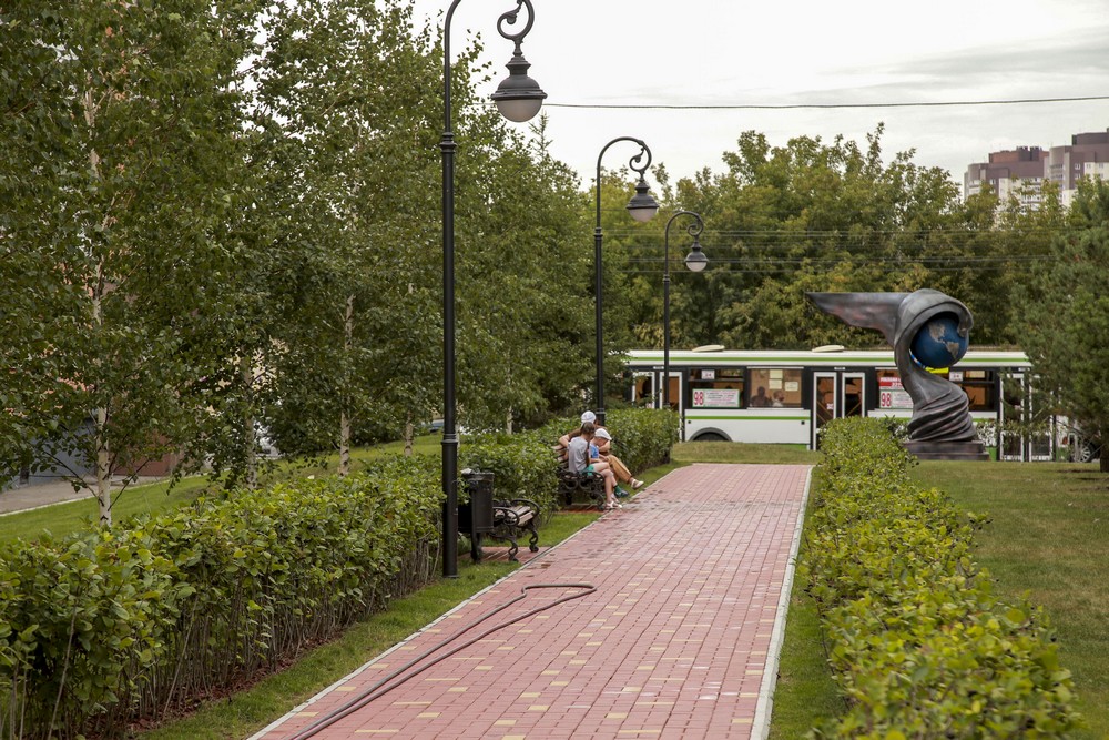 — Идея та же самая — некий объединяющий фактор. Дети и собака, четвероногий друг, запускают воздушного змея. Это ли не признак счастья, радости, дружбы, объединения? Аллея в целом так и задумывалась — как некий объект, который будет объединять соседей. И это мы уже сейчас наблюдаем. Это место отдыха местных жителей.