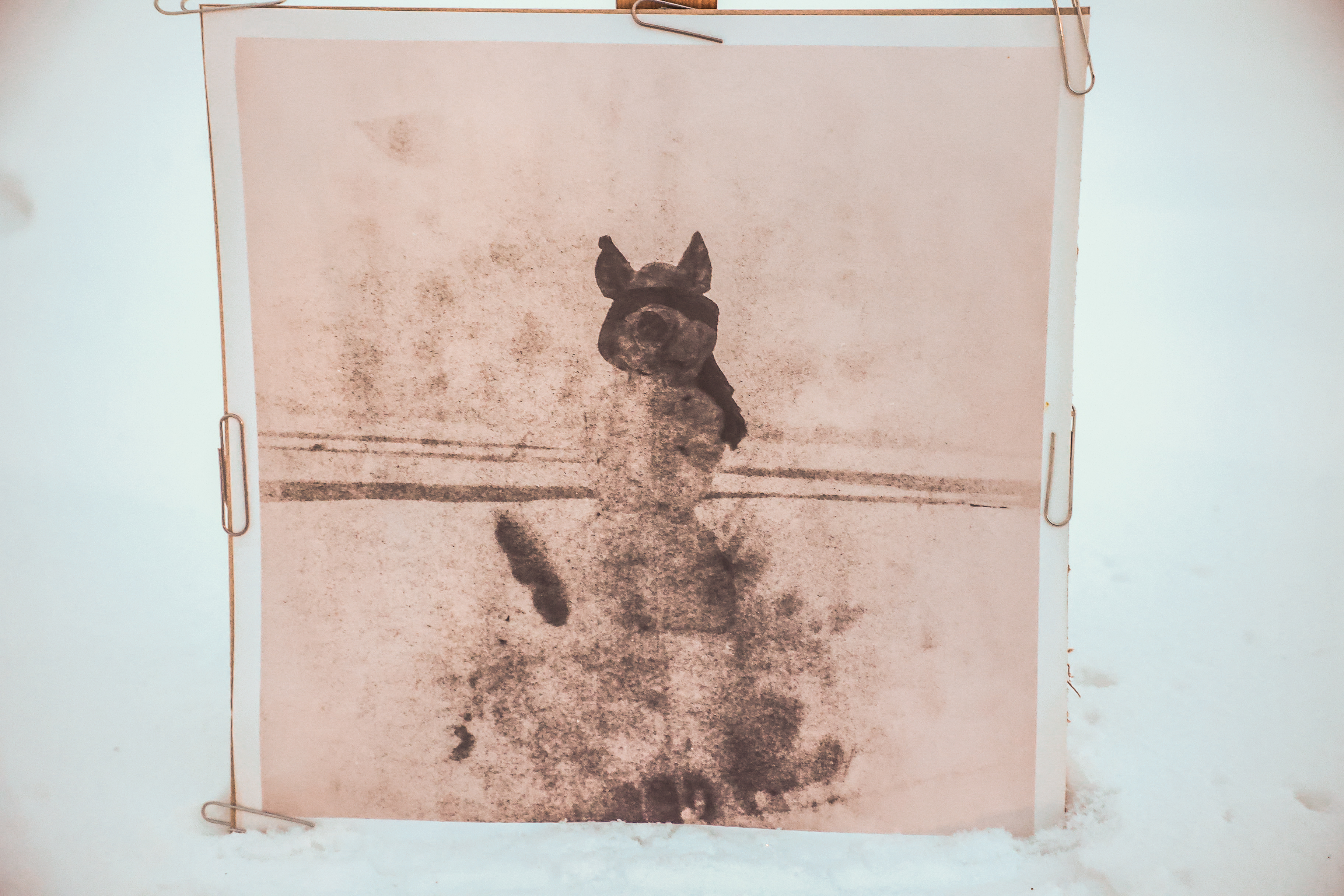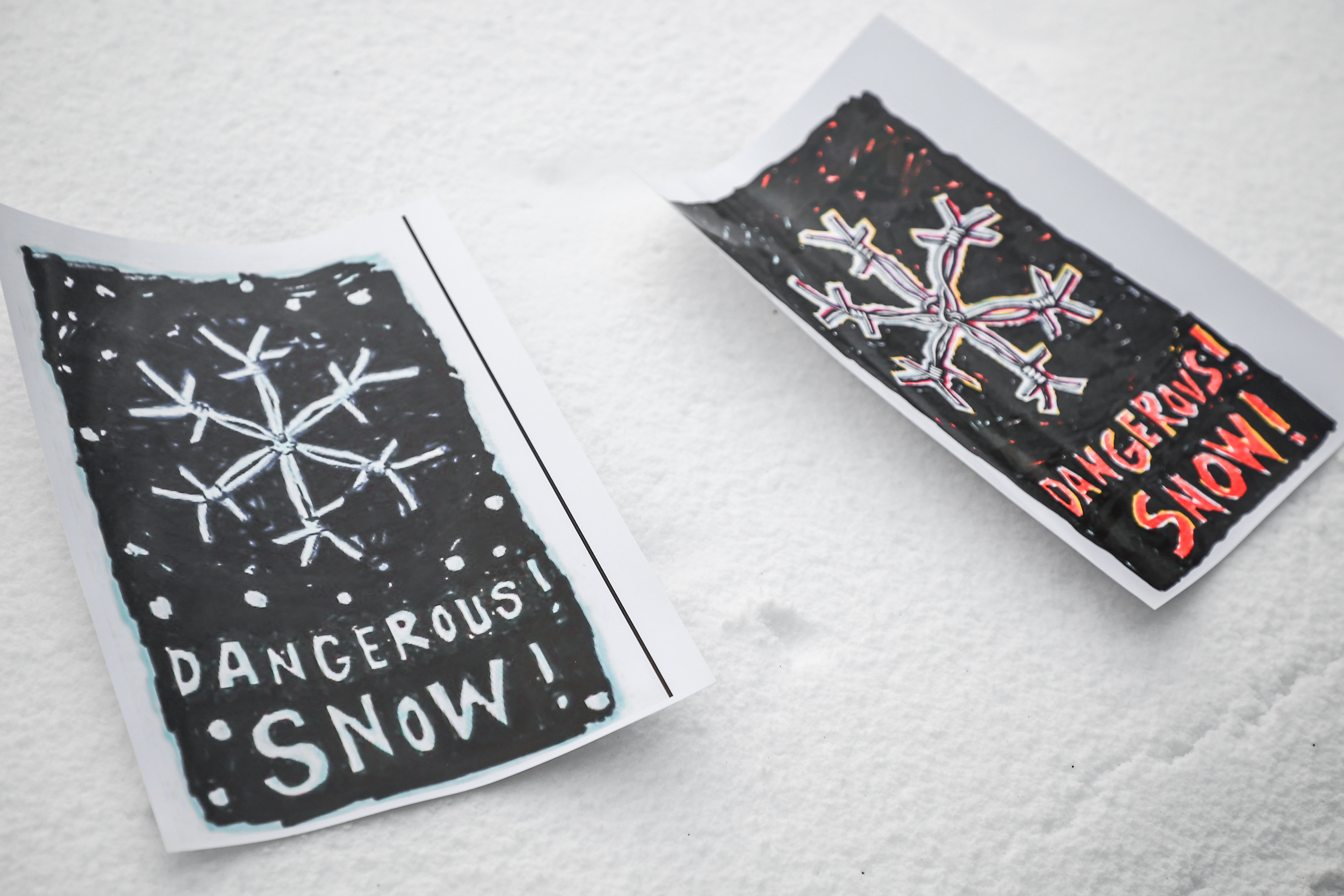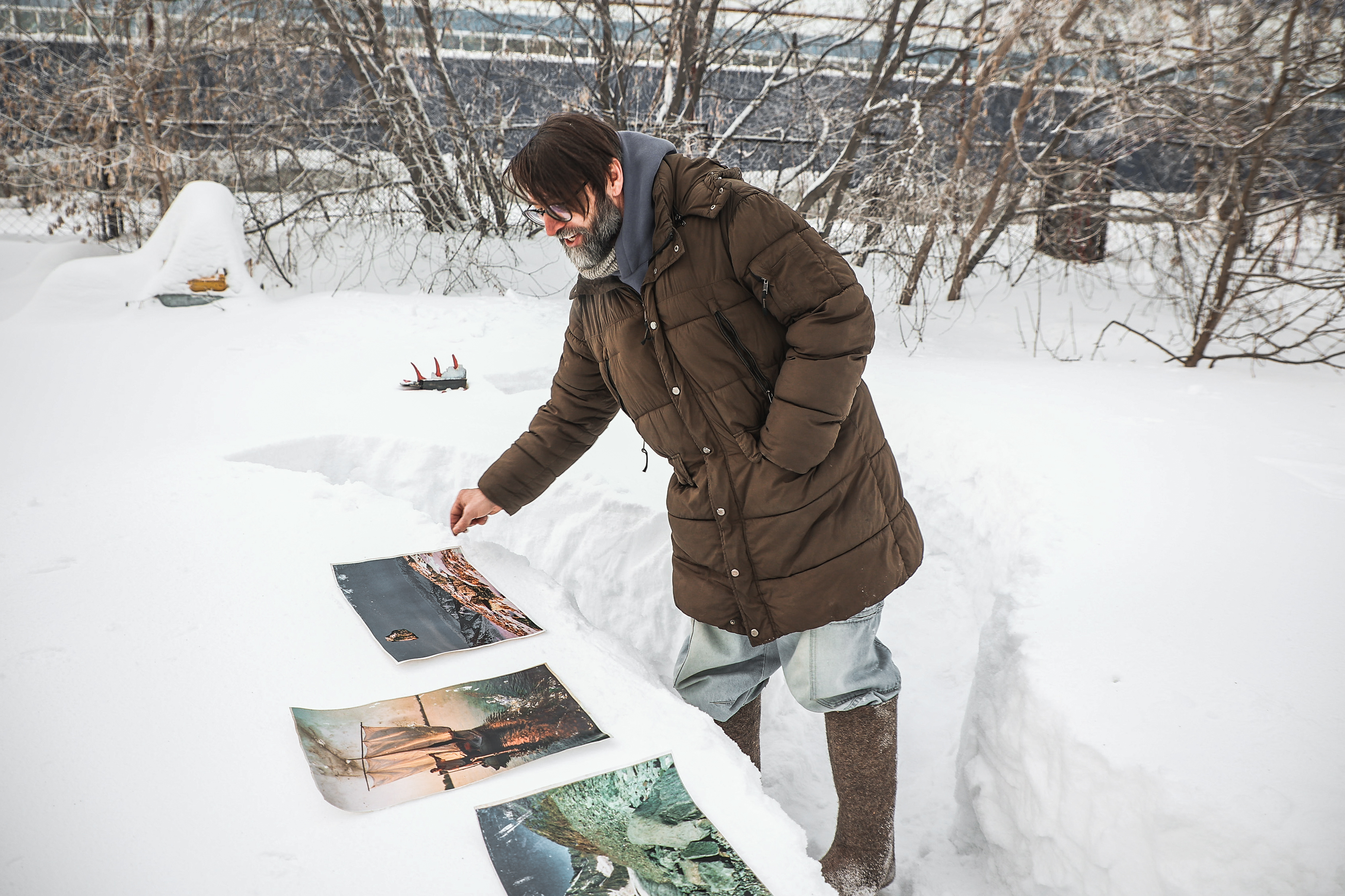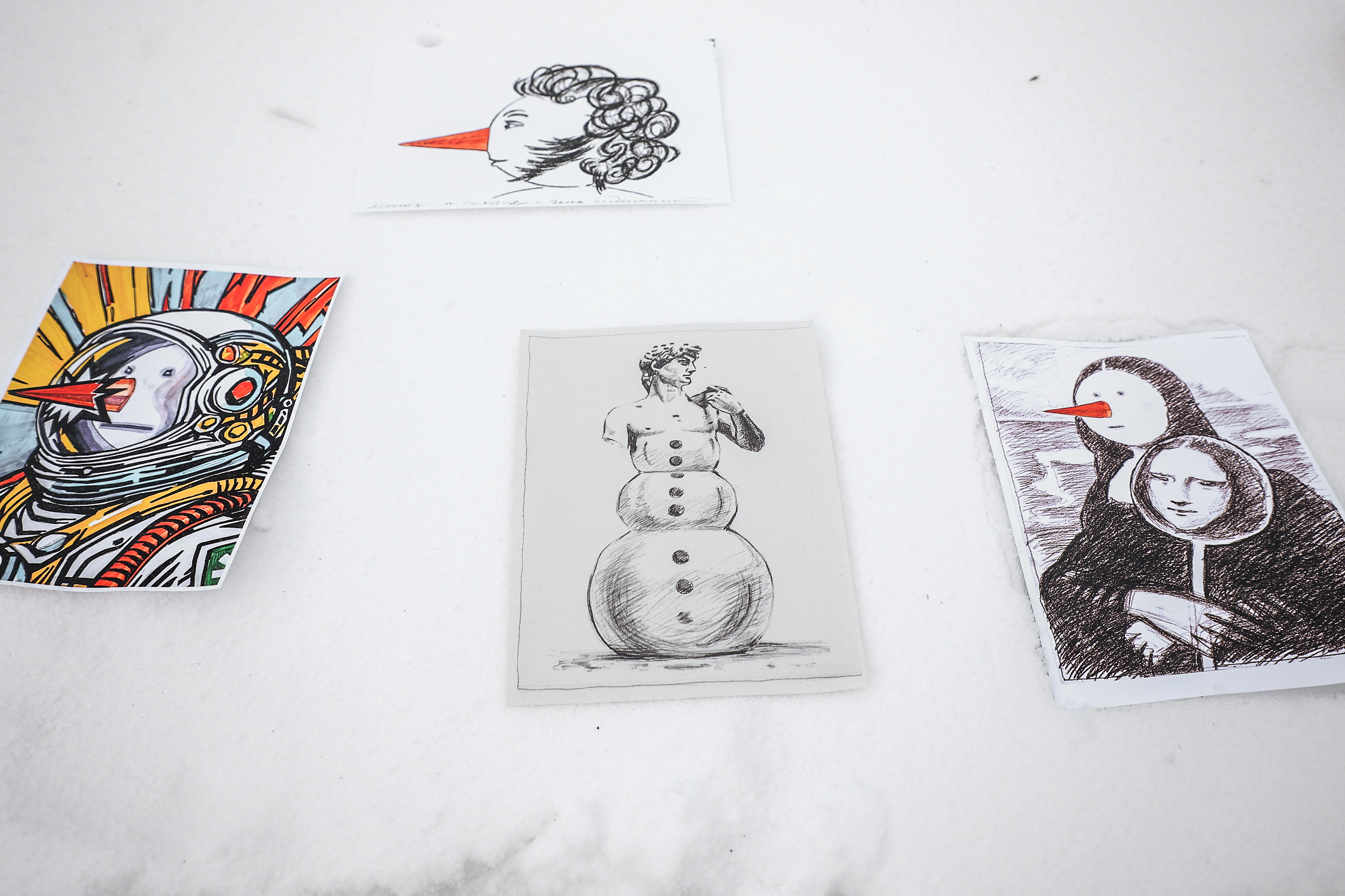 Прямо на снегу у дома поместили работы художников, фотографов и скульпторов. Свои произведения предоставили Слава Мизин, Филипп Крикунов, Никита Овсюк, Андрей Курченко, Алена Залуцкая, Дамир Муратов, Лукас Пуш.