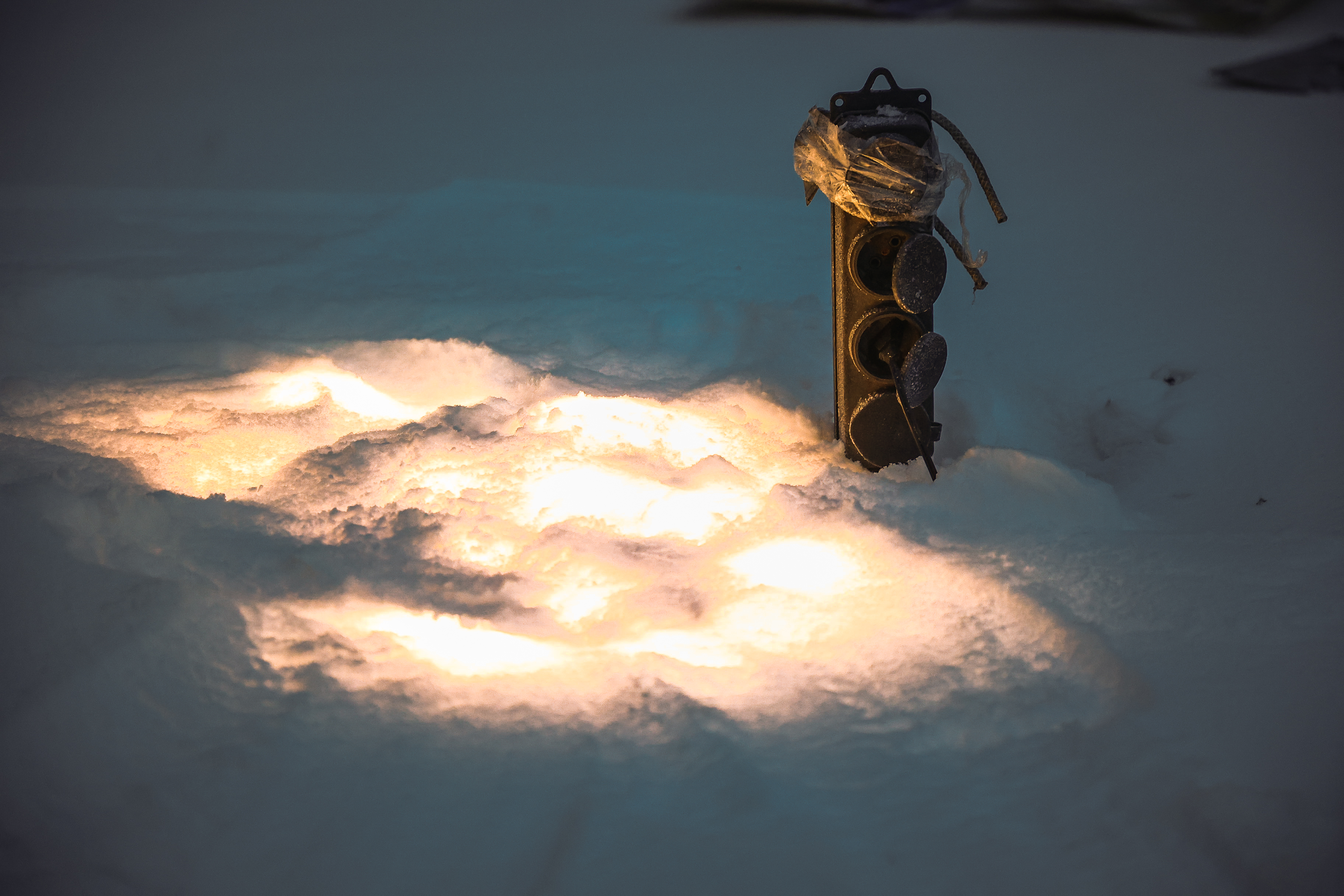 Сам Иван оформил центральную инсталляцию «Свет надежды» в виде мерцающего из-под снега нечто. Когда стемнело, оно стало выглядеть максимально загадочно.