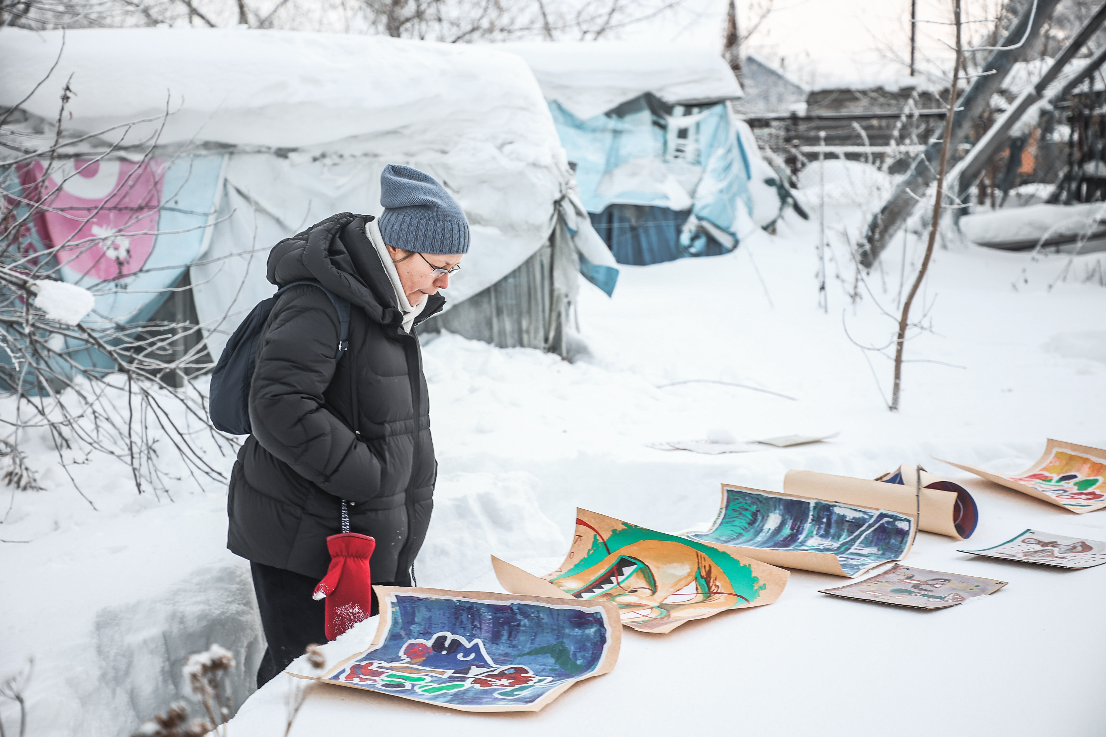 В последний день самой морозной недели января в Новосибирске прошла спонтанная выставка под названием «Холодно-26». Экспозицию из живописных и графических работ, а также фотографий и инсталляций разместили прямо на снегу во дворе купольного дома в микрорайоне «Лесоперевалка». Как это было — смотрите в нашем фоторепортаже.