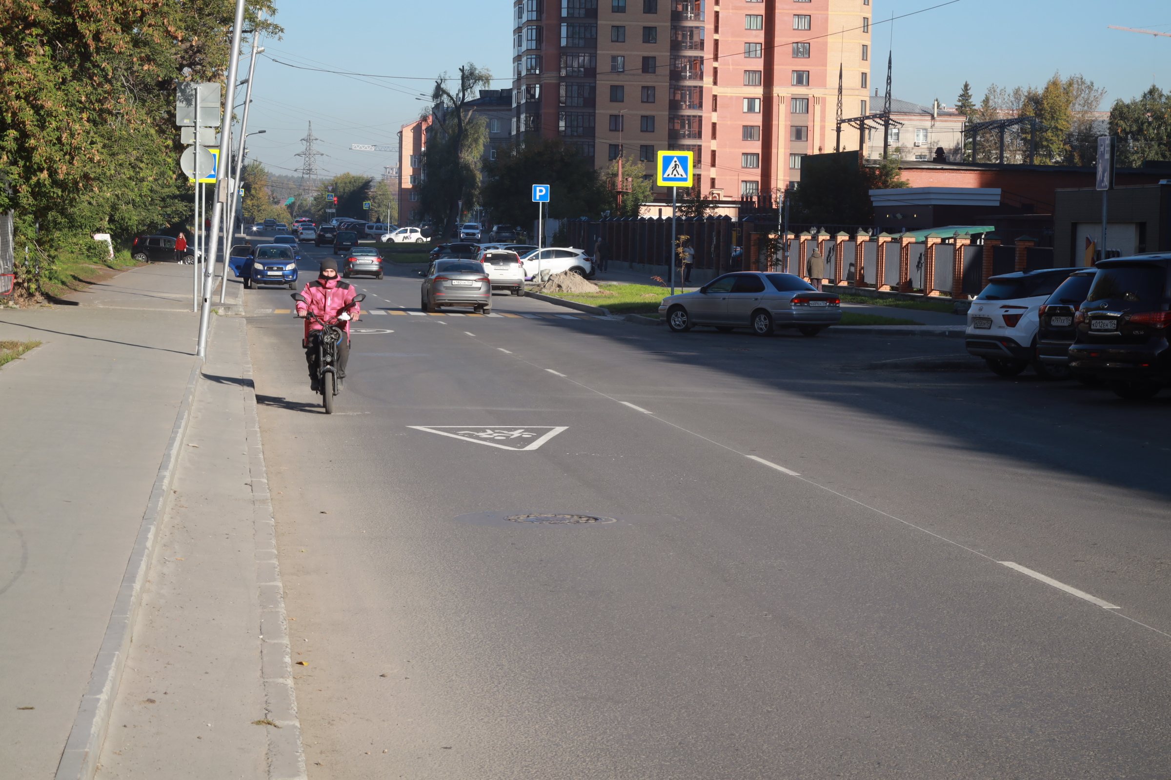 Работы выполняла компания ООО «Дорсиб плюс». Подрядчик зашёл сюда ещё в мае. За это время не просто избавил от колеи и выбоин проезжую часть, но и поднял смотровые и дождеприёмные колодцы, обновил покрытие тротуара, заменил бортовые камни и пешеходное ограждение, восстановил газон, разместил недостающие дорожные знаки. На каждом этапе работу контролировали.