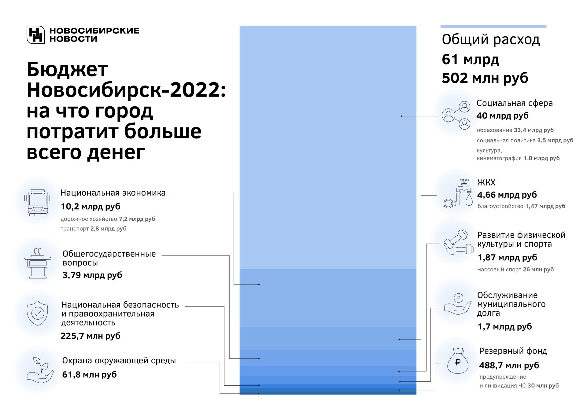 Бюджет Новосибирска — 2022: на что город потратит больше всего денег