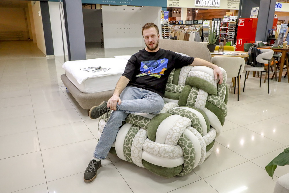 Сплести кресло из поролоновых шнуров придумала команда новосибирской фабрики мягкой мебели «А12». Всем, кто видит этот концептуальный предмет, сразу хочется на нём посидеть. Как идея воплотилась в жизнь, рассказал основатель предприятия Антон Павлюк.