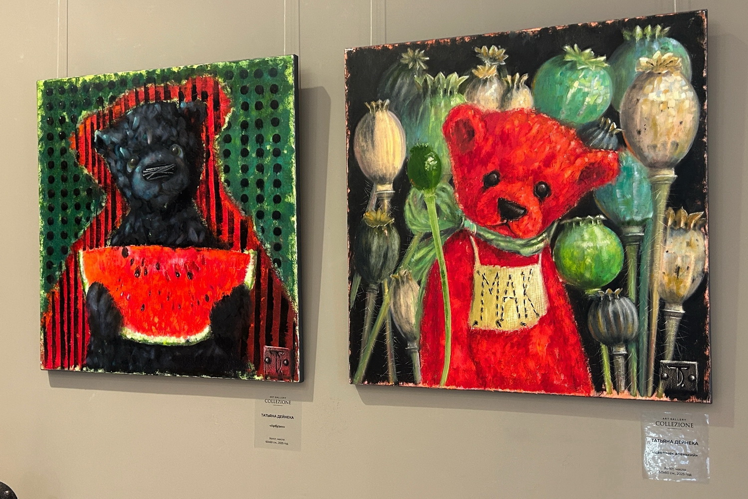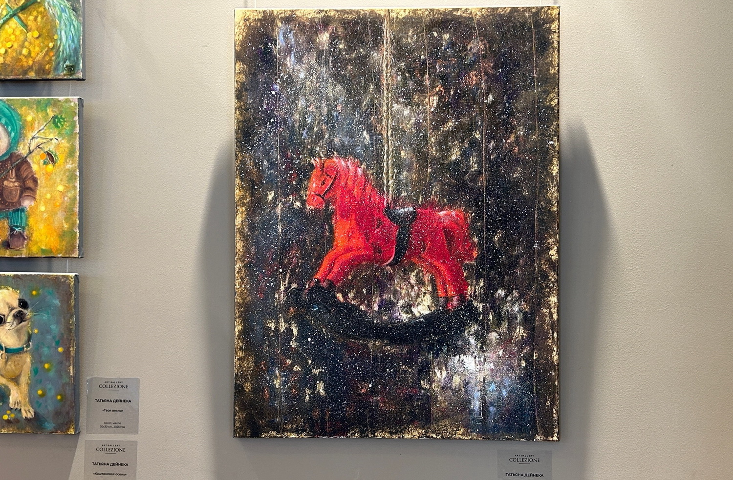 Картины художницы Татьяны Дейнеки посвящены забытым детским игрушкам. Метод автора помогает зрителю поймать праздничное настроение.