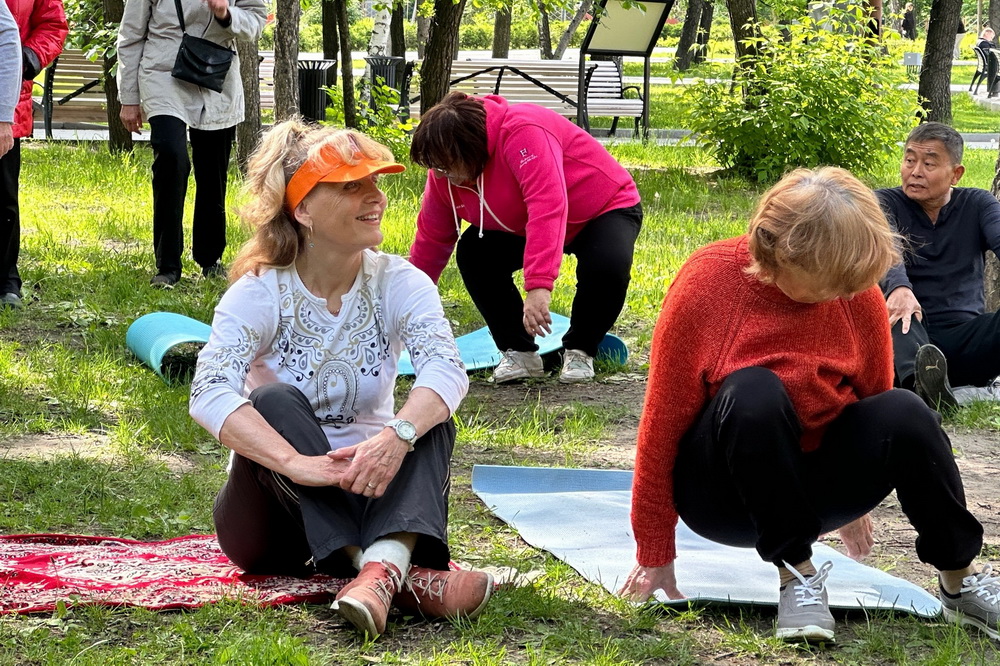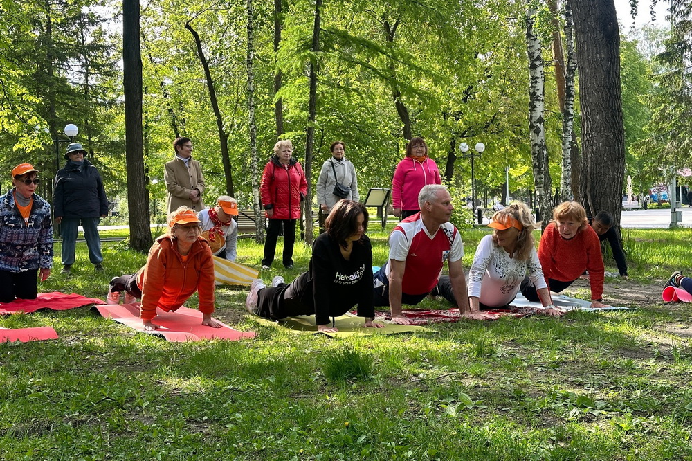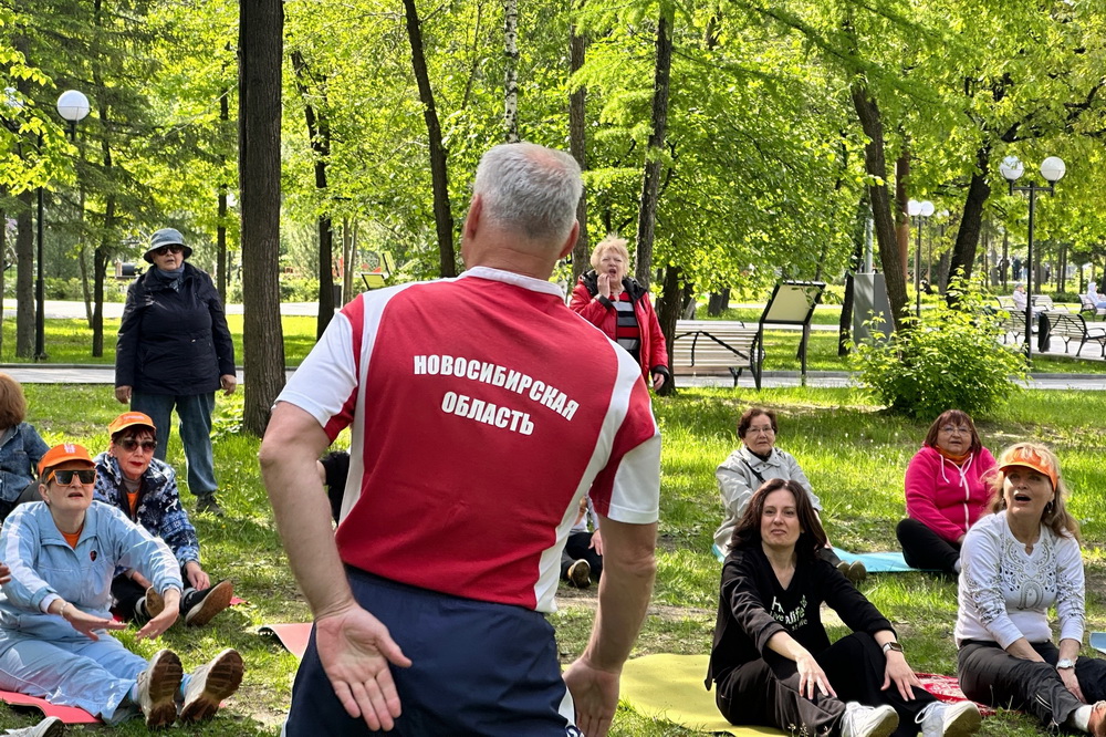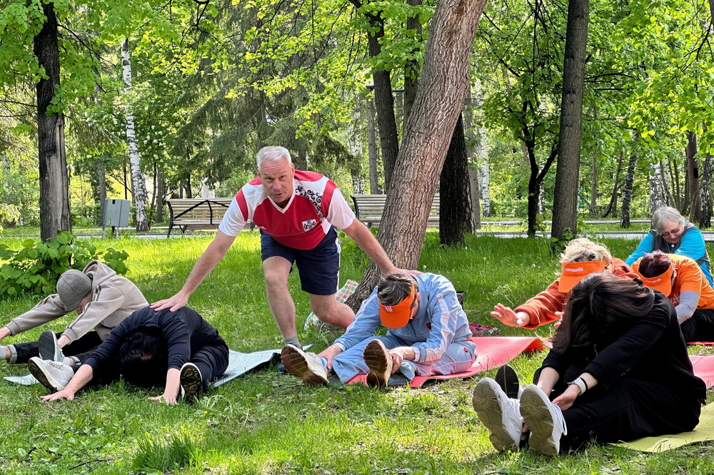 Юбилейный сезон парковой гимнастики открыли в Новосибирске. Первое летнее занятие на свежем воздухе провели в Центральном парке.