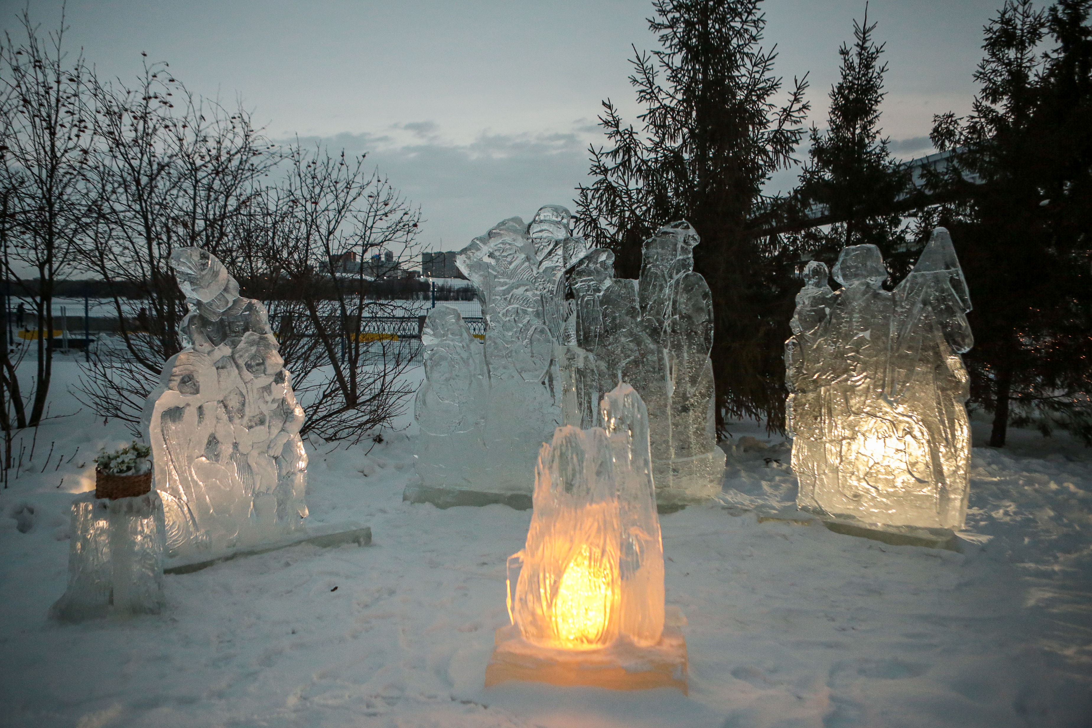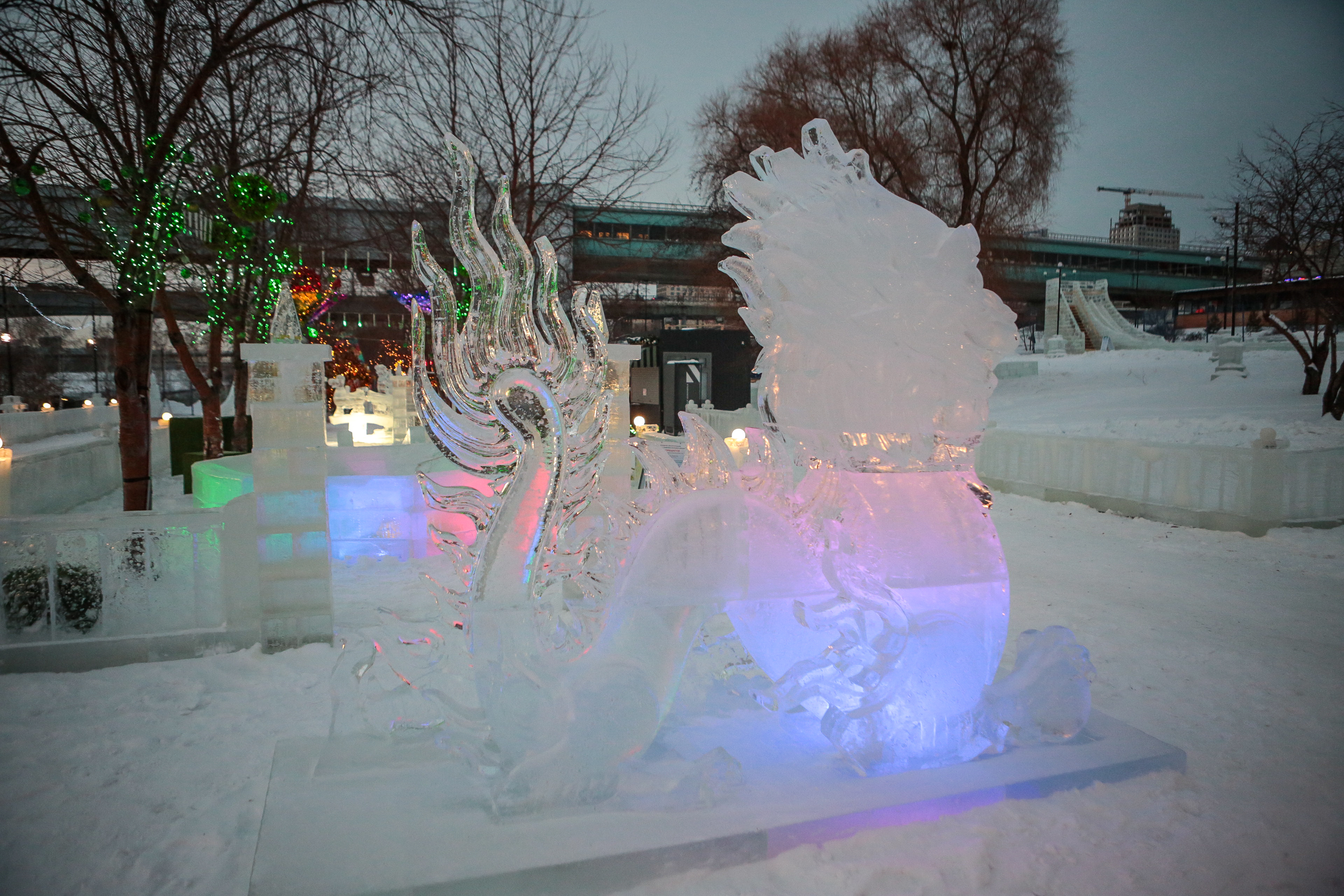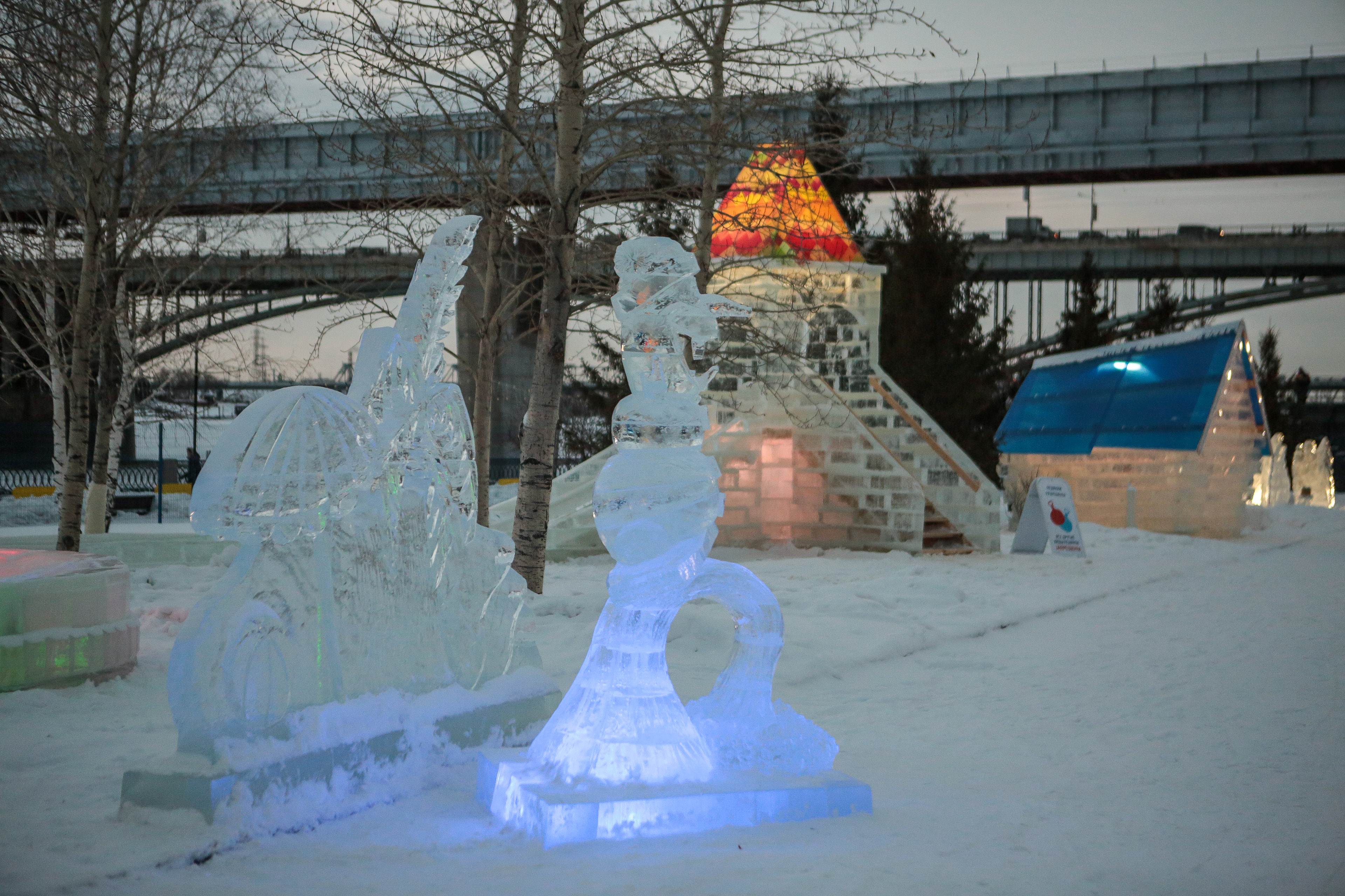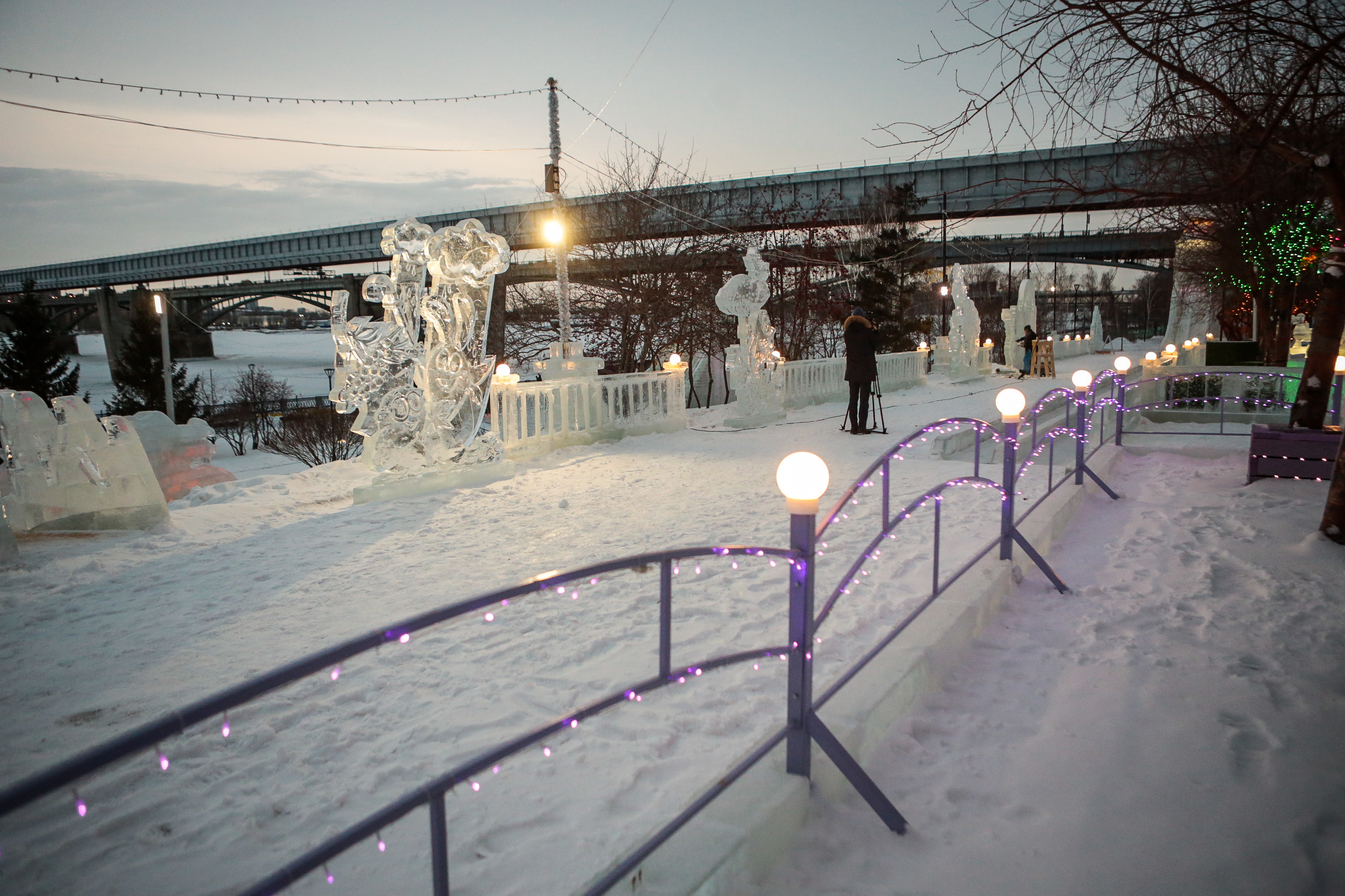 Ледовый городок — одна из самых востребованных зимних активностей на Михайловской набережной. В этот раз его концепция — «Времена года», поэтому на главной аллее расположились скульптуры, символизирующие зиму, весну, лето и осень. В прогулочной зоне — персонажи из мультфильмов, трон, цветы и дракон, выполненные изо льда.
