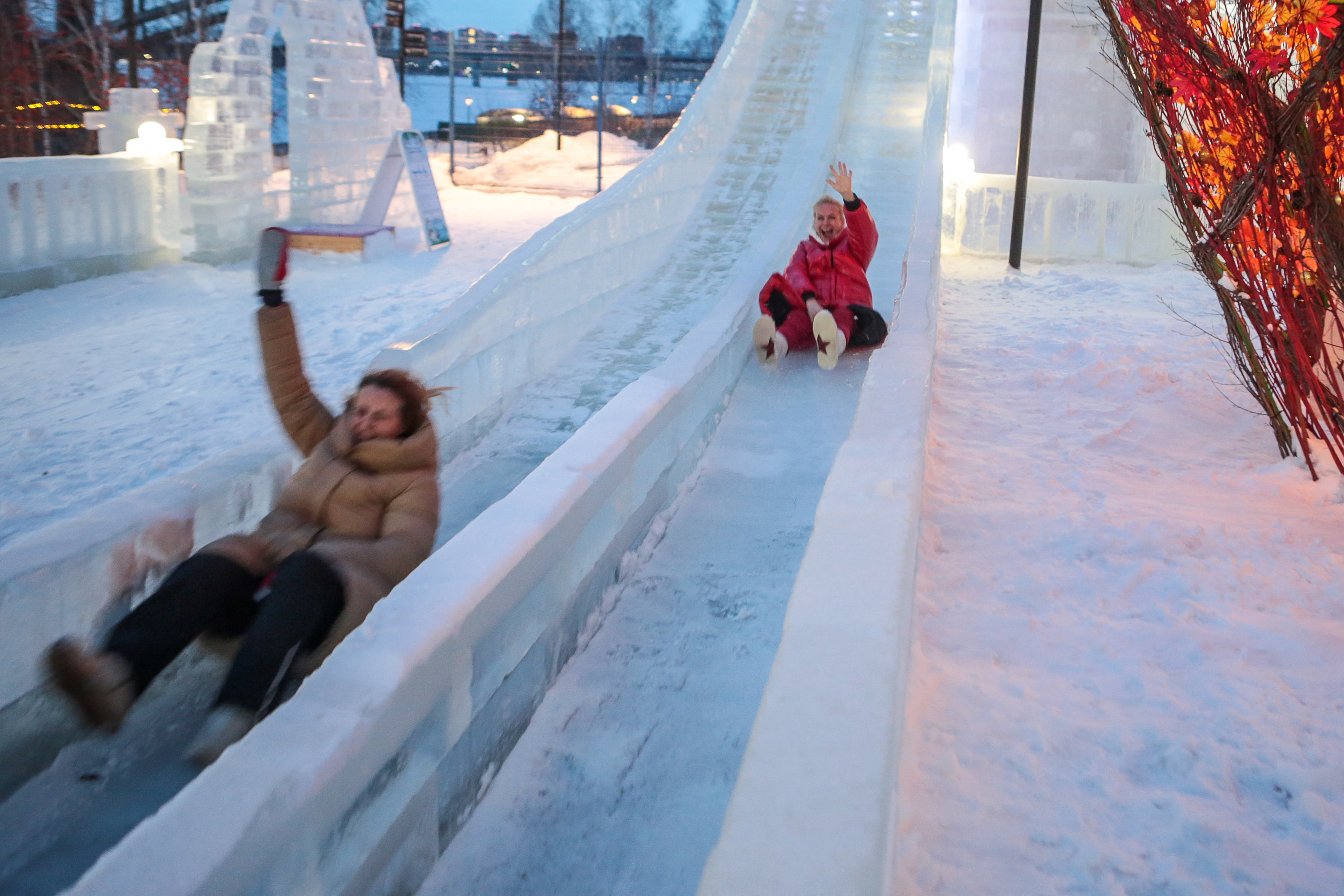 Посетители могут покататься с горок разной высоты, попасть в ледяной лабиринт, а самые юные гости — попытаться выбраться из ледяной чаши.