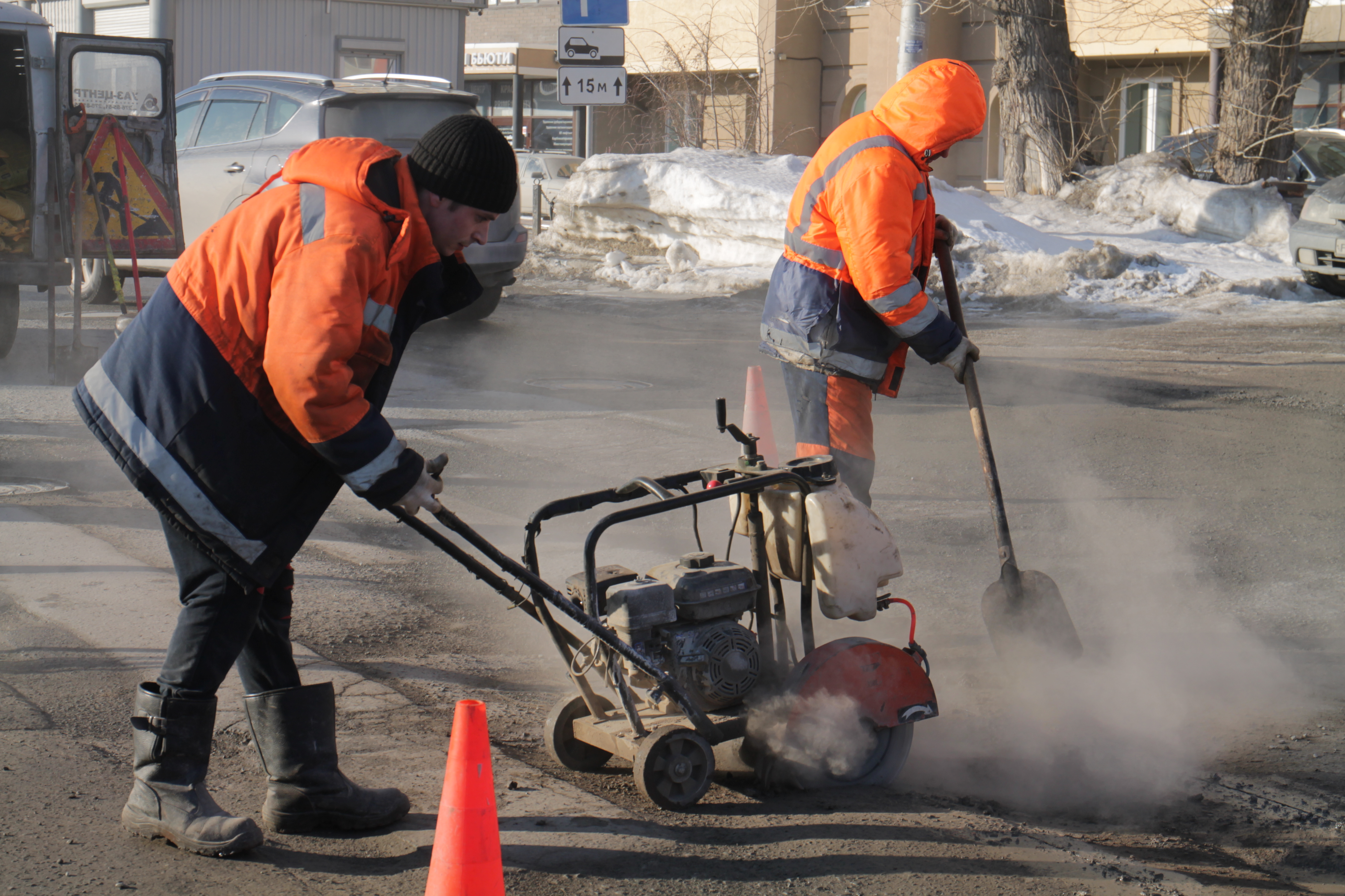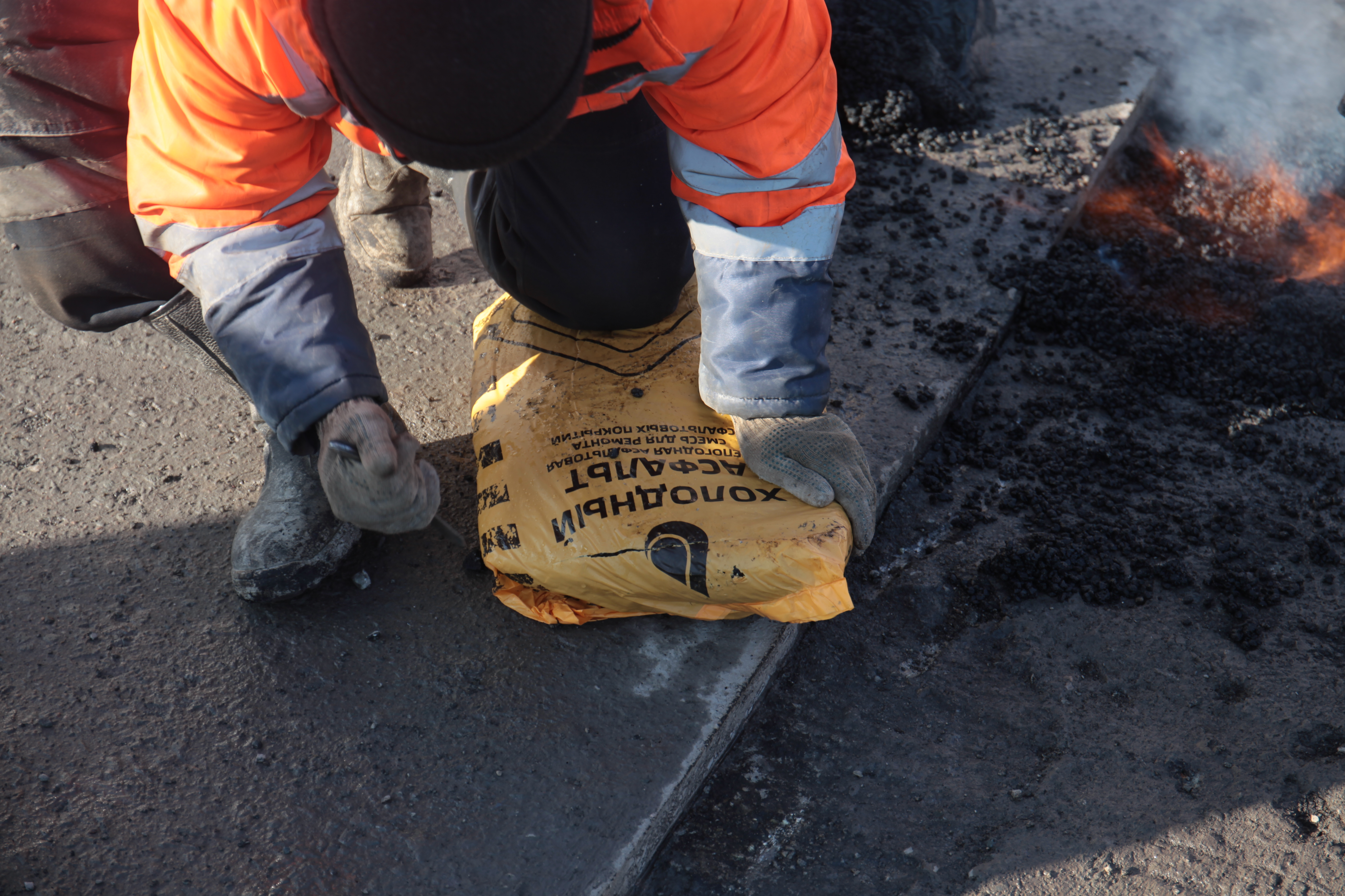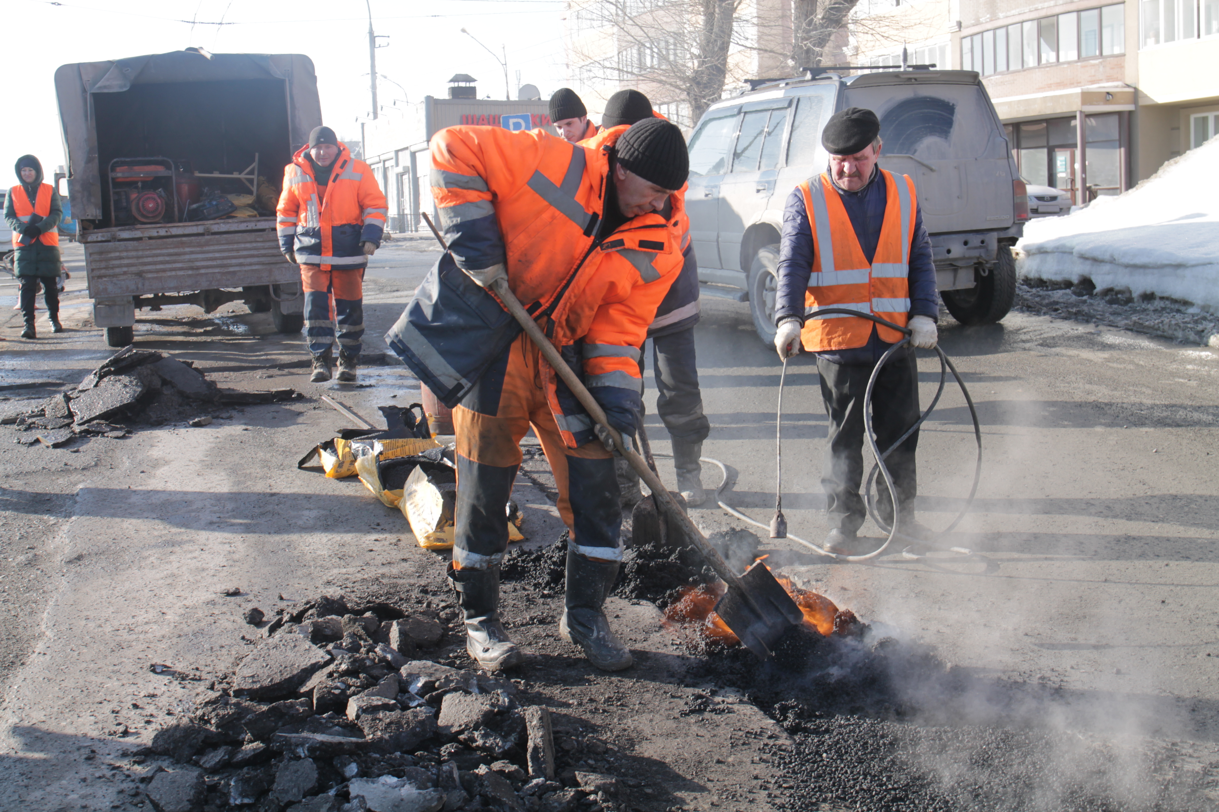 «Стоит задача вовремя отремонтировать повреждённые участки. На данный момент работаем с холодным асфальтом. Материал позволяет работать при минусовых температурах. Сроки работ — до тех пор, пока не заработают асфальтовые заводы и не установятся положительные температуры. Тогда уже выйдут подрядные организации, будет работать тяжёлая техника», — рассказал начальник участка Алексей Харченко.