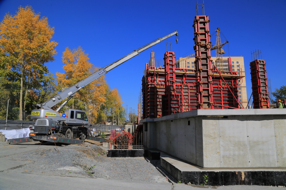 Новую школу откроют в следующем учебном году в Дзержинском районе Новосибирска. Подрядчик уже возводит каркас на уровне второго этажа.