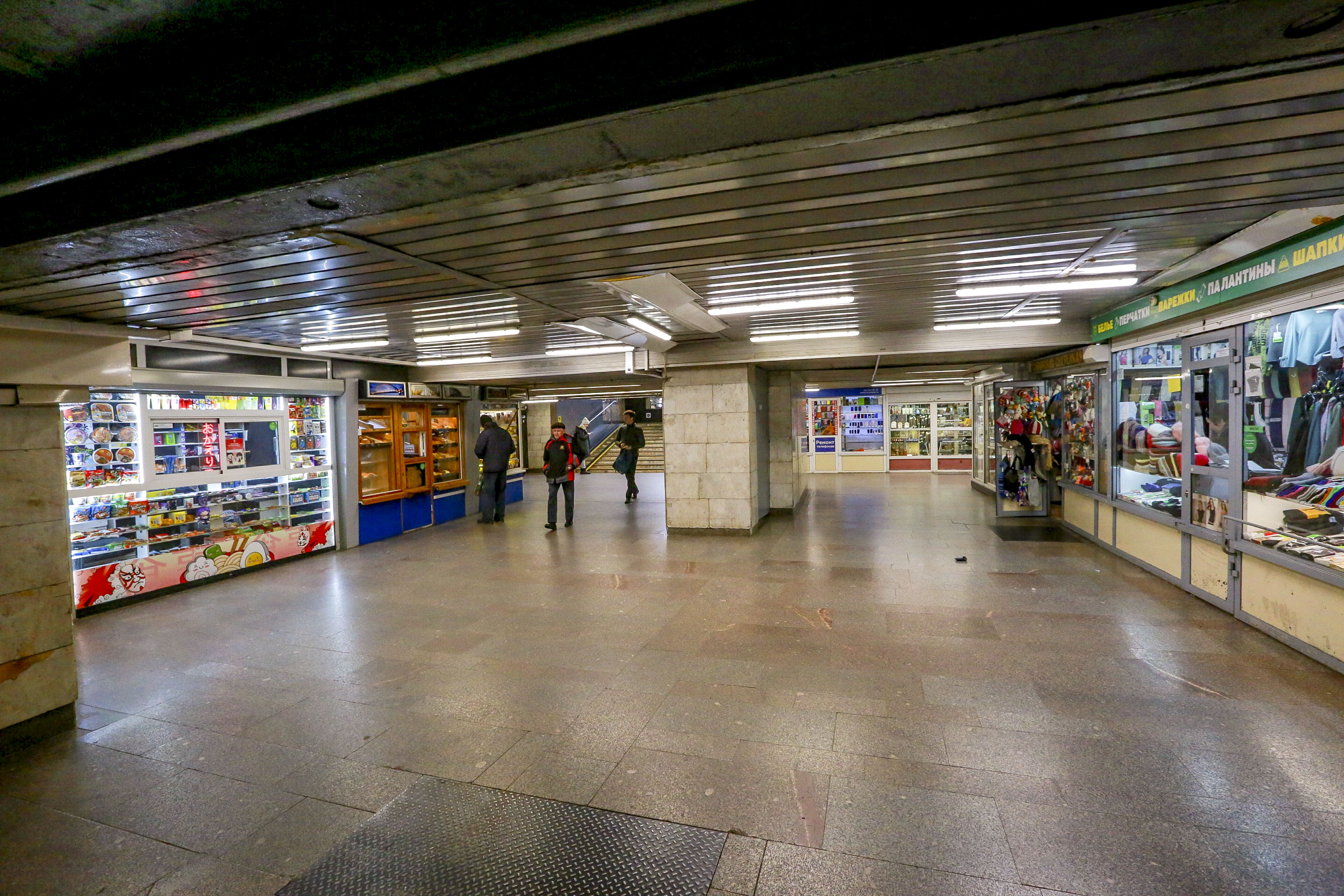 У станции четыре выхода, один из которых встроен в здание краеведческого музея. Выход в сторону Вокзальной магистрали называется «штаны», потому что он раздвоен и имеет два лестничных марша. Входы в метро совмещены с подуличными переходами.