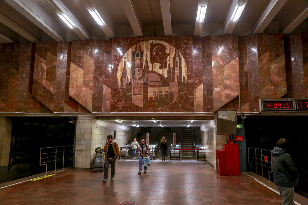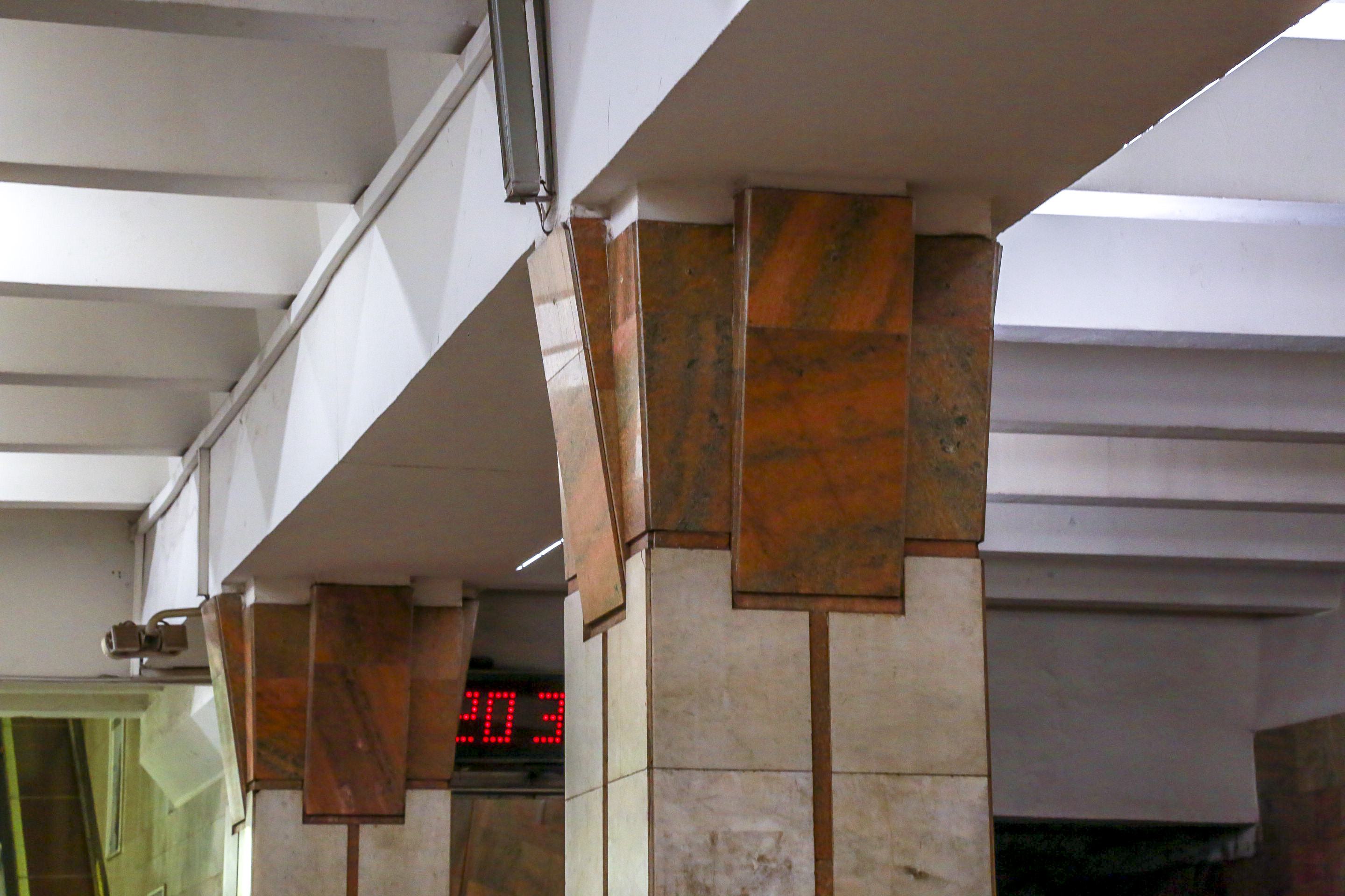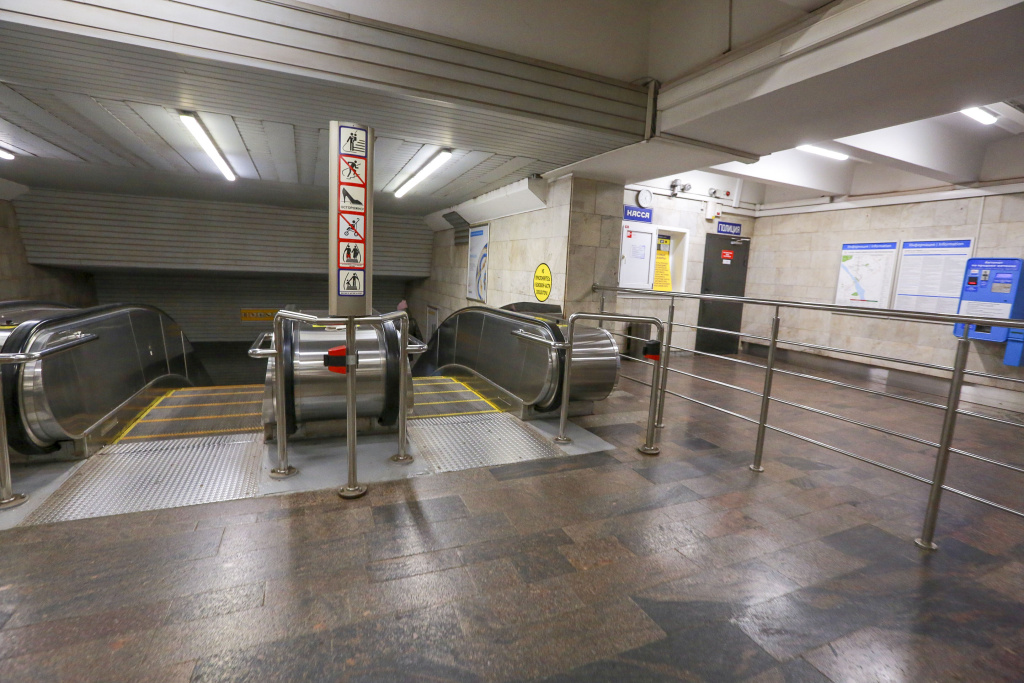 Несмотря на то, что станция неглубокого заложения, на ней по требованию архитектора установили эскалаторы.