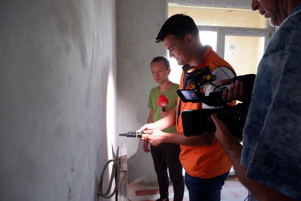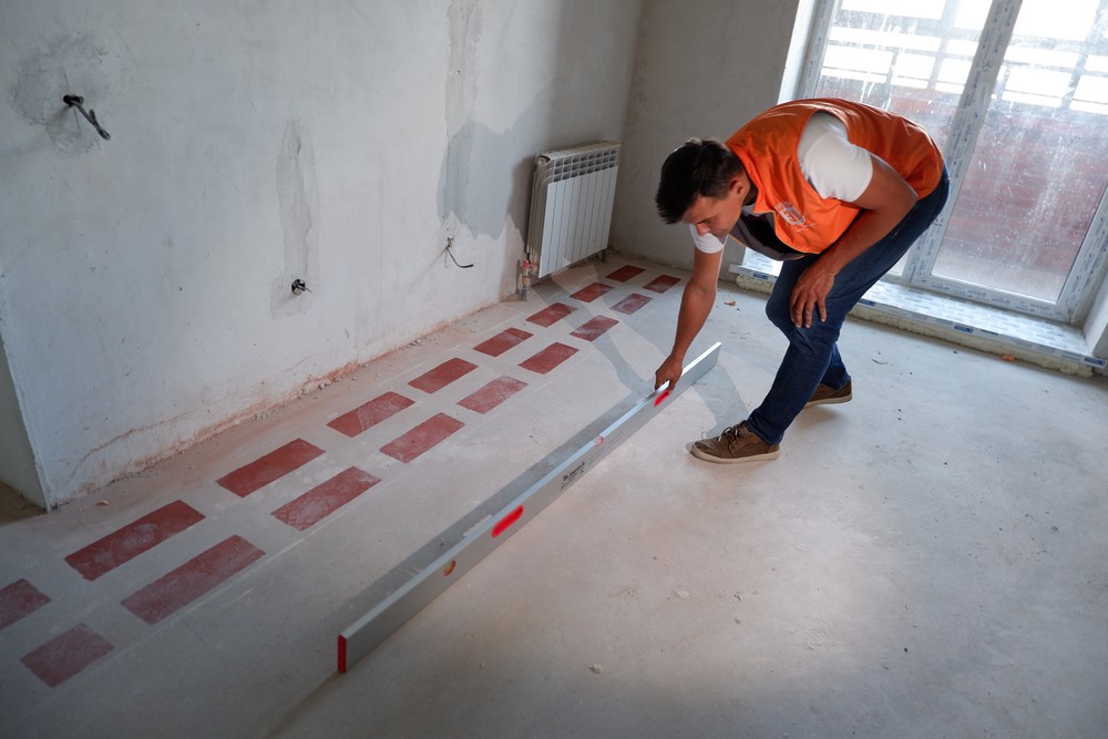 — Да, пол измеряем тоже правилом, минимальное отклонение — от двух до четырёх миллиметров. Собственно, здесь у нас норма.