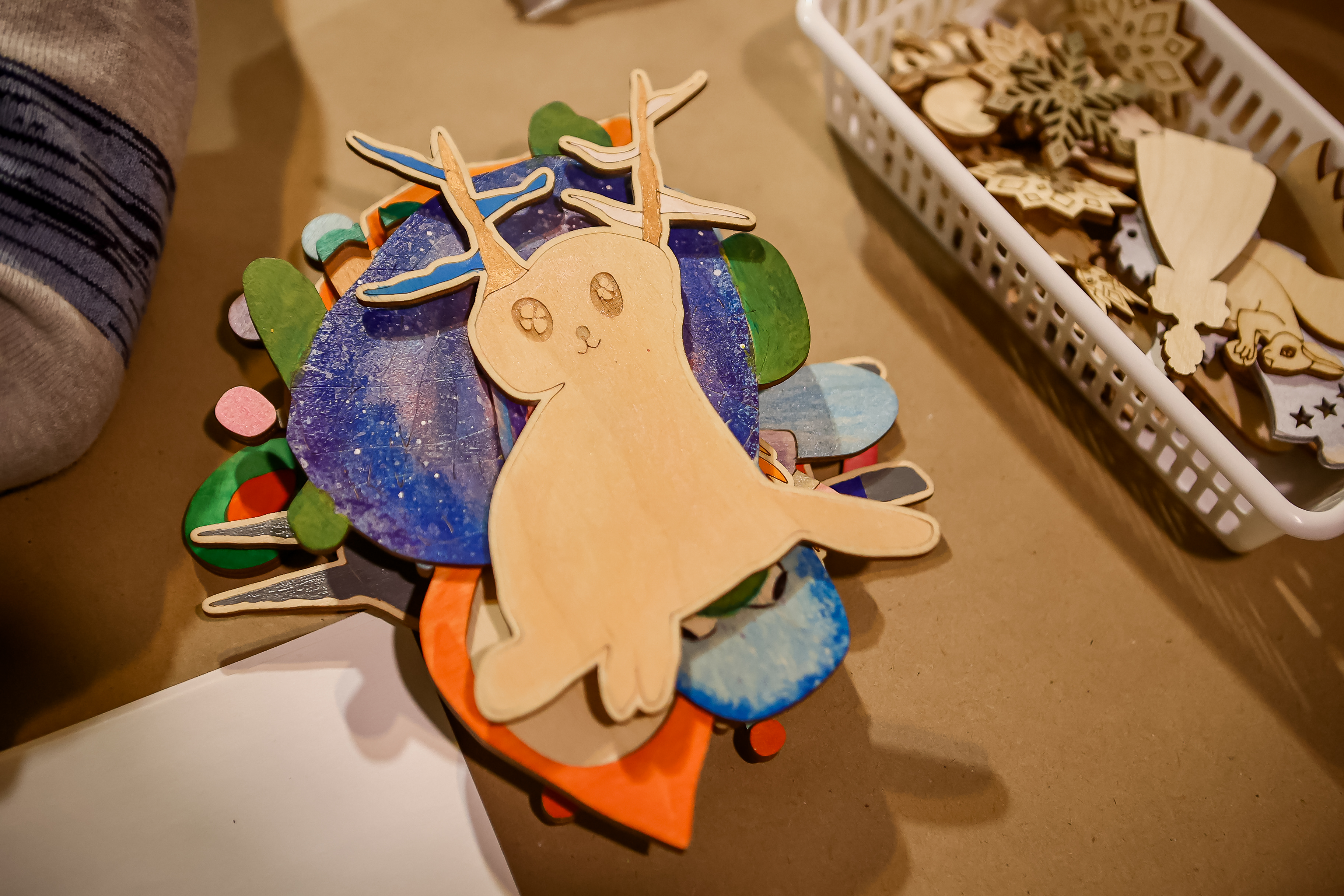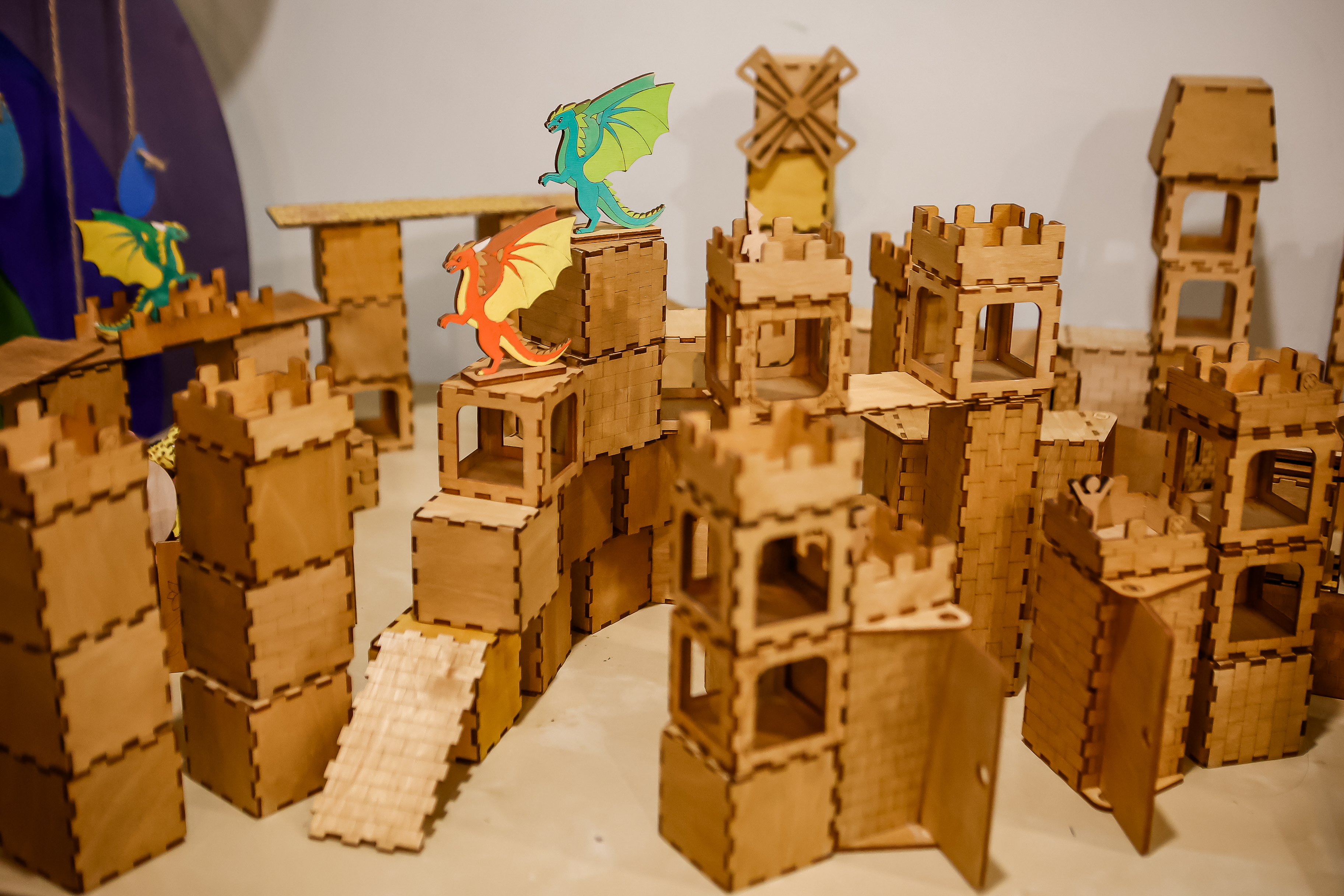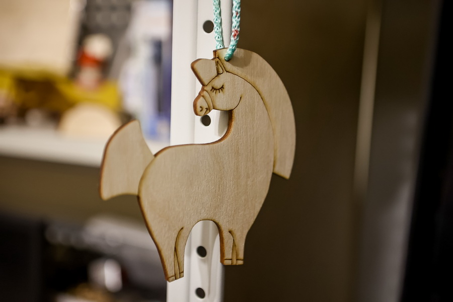 Все изделия выполнены из дерева — берёзовой фанеры. По словам Надежды Андреевой, в нём заложен огромный потенциал для работы: этому материалу можно придать любую форму, на нём можно рисовать, и, что немаловажно, он экологичен и безопасен. На стеллажах рядом с зайцами, былинными богатырями и машинками соседствуют и сложные конструкции, собранные из мелких деталей: танк Т-34, квадроцикл и даже миниатюрный Бугринский мост.