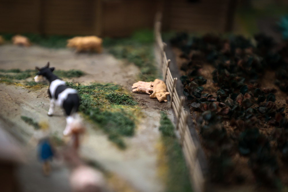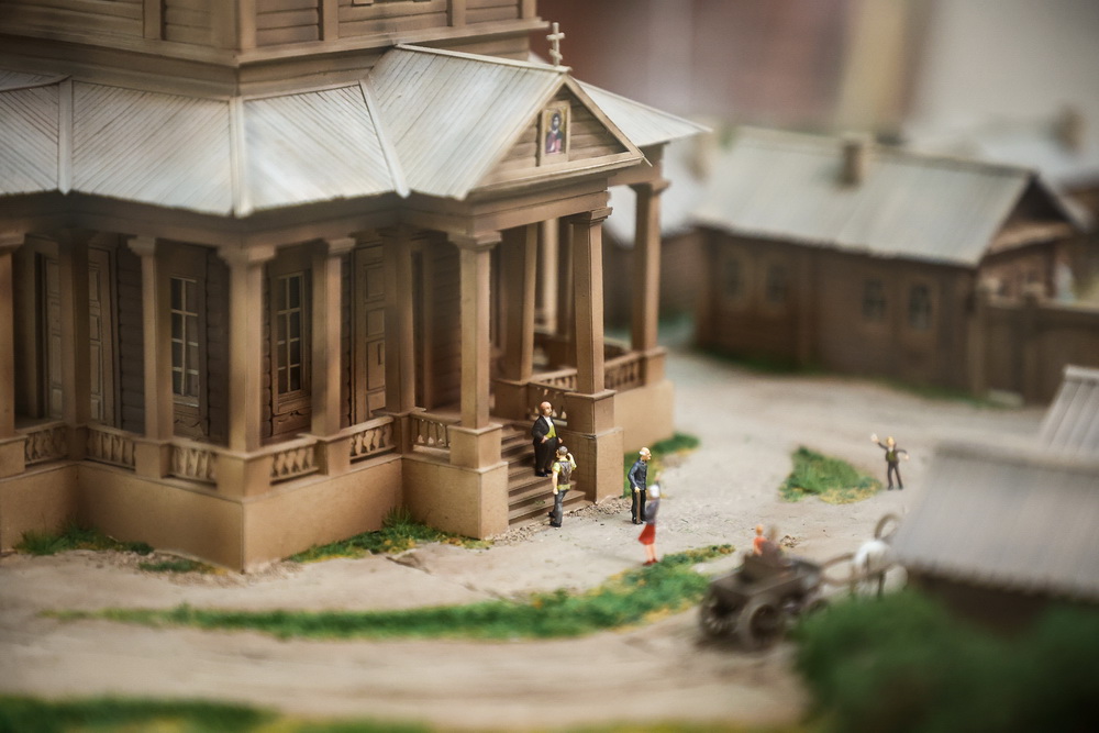 Поражает количество мельчайших деталей на макете. Каждый кустик на огородных грядках, каждый поросёнок, греющийся на солнышке во дворе, выполнены с ювелирной точностью.
