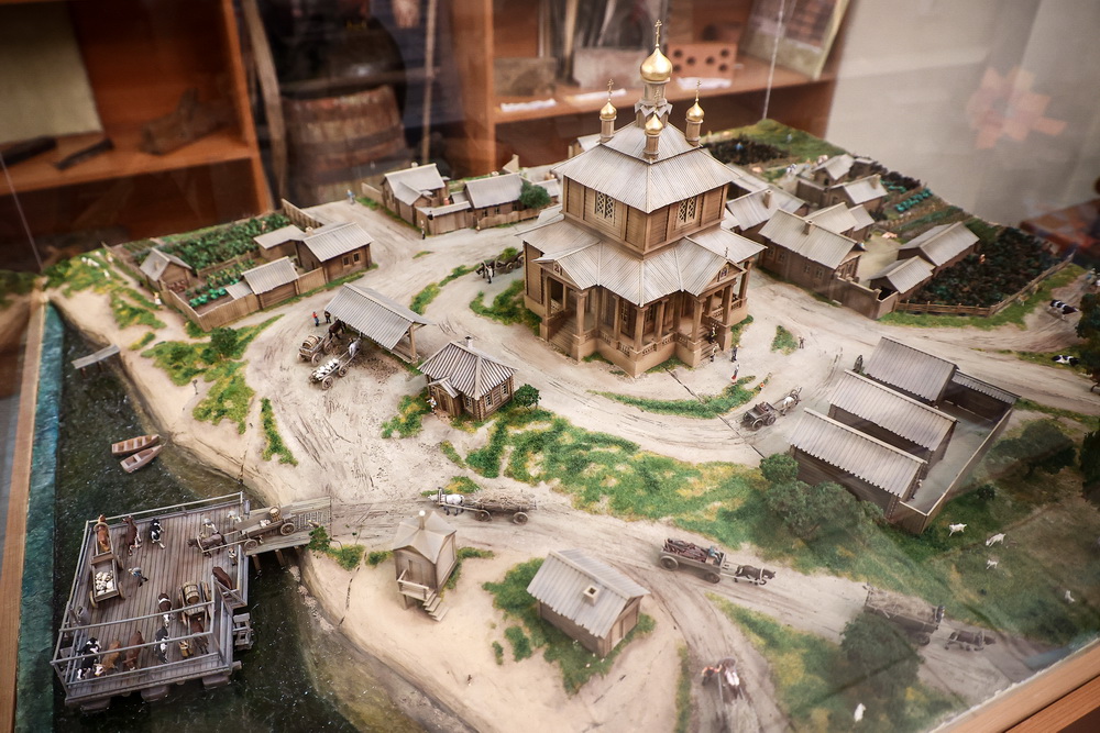 Рядом с макетом села находится миниатюра кержацкого (старообрядческого) двора, которую разрешают даже потрогать руками. Можно снять крышу с дома и посмотреть, как был устроен быт зажиточных сибиряков 150–200 лет назад.