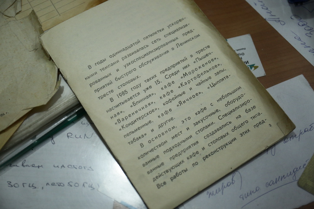 «Тогда „Пышечная“ была филиалом столовой №35 ленинского треста столовых. Через дорогу от нас тогда было кафе „Сибирские пельмени“, кафе „Мороженое“, на Титова — „Вареничная“, блинная, „Цыплята табака“, кафе „Яичное“. Все они входили в трест», — вспоминает Вера Дмитриевна.