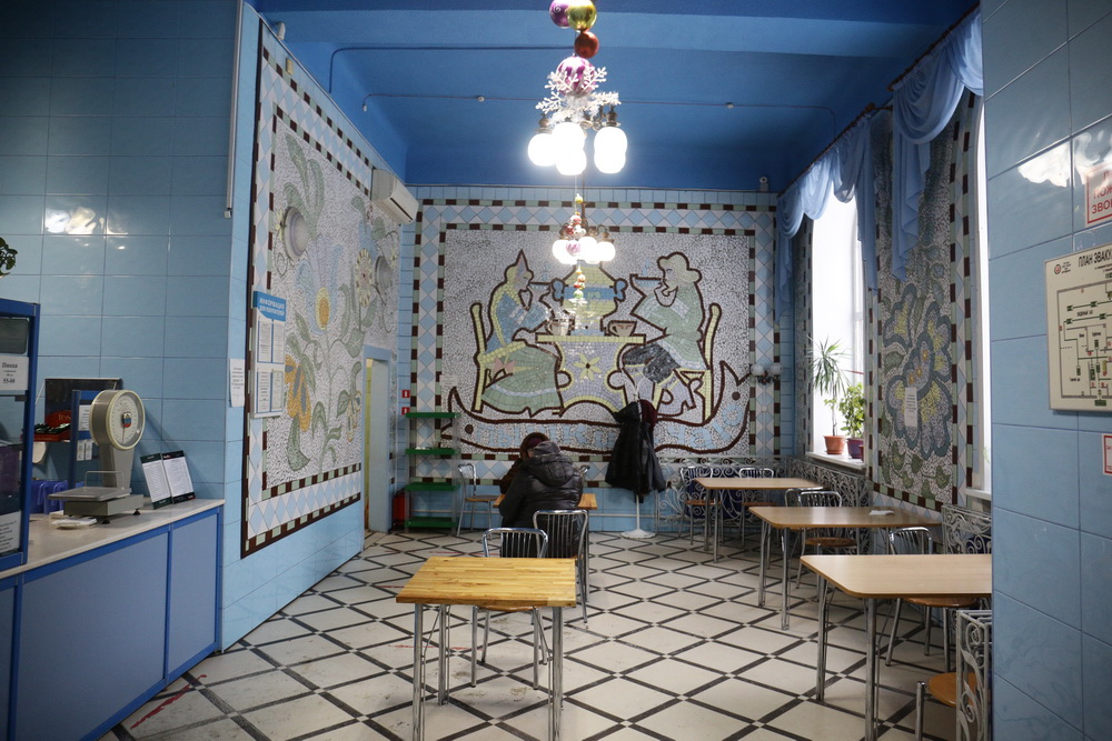 Вере Дмитриевне тоже предлагали закрыть советское наследие, но она категорически отказалась. Более того, решила сделать в помещении ремонт, заменить старую плитку, которая уже «начала сыпаться на головы». Новую плитку подобрали в цвет мозаики. Батареи покрасили в синий и закрыли изящными коваными решётками. Пол в зале тоже обновили, родное покрытие из метлахской плитки осталось только в цехе.