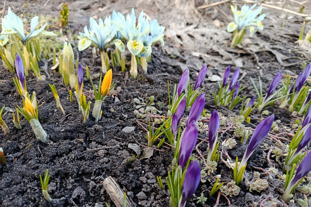 Дачные первенцы: крокусы и ирисы расцвели на грядках новосибирцев