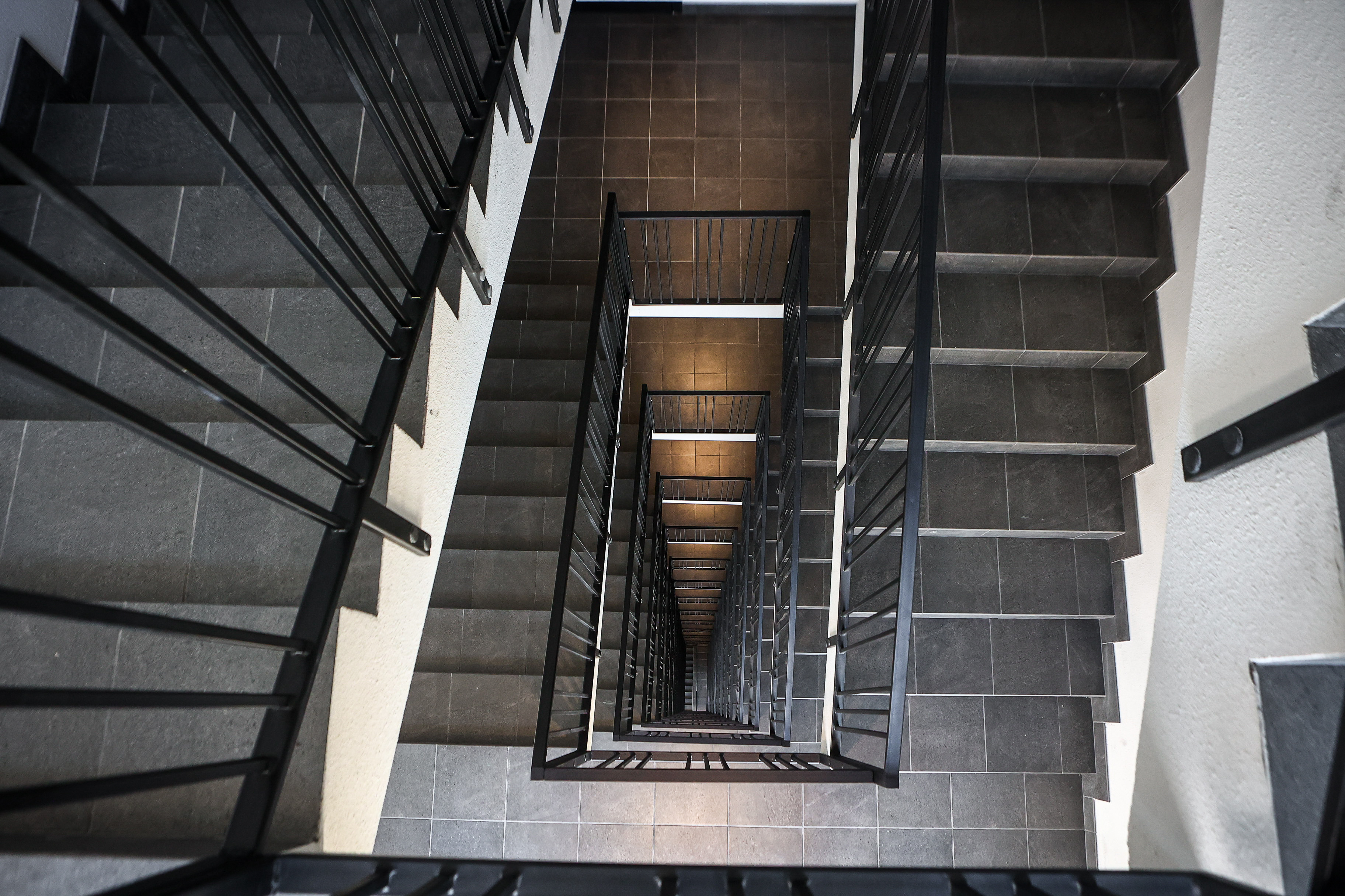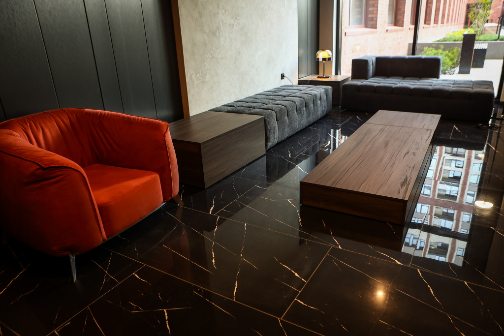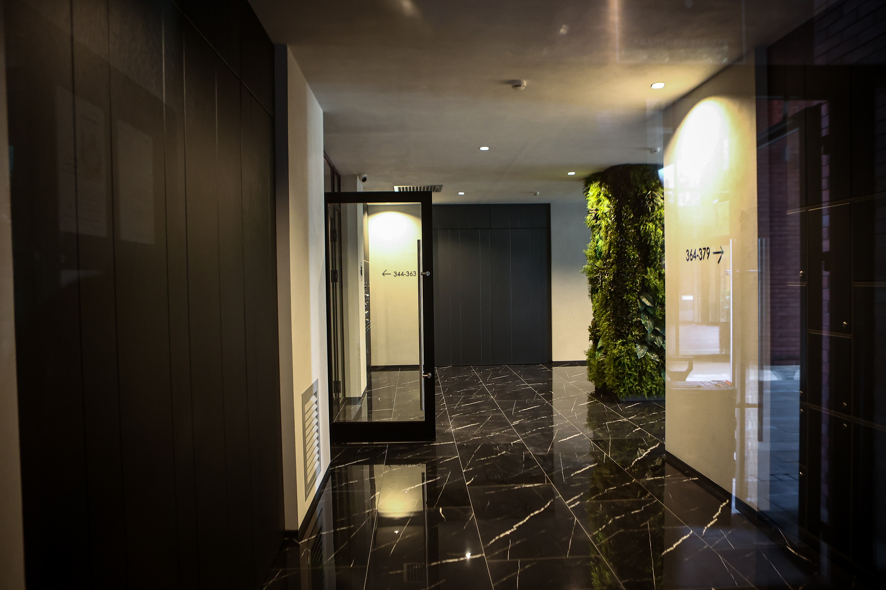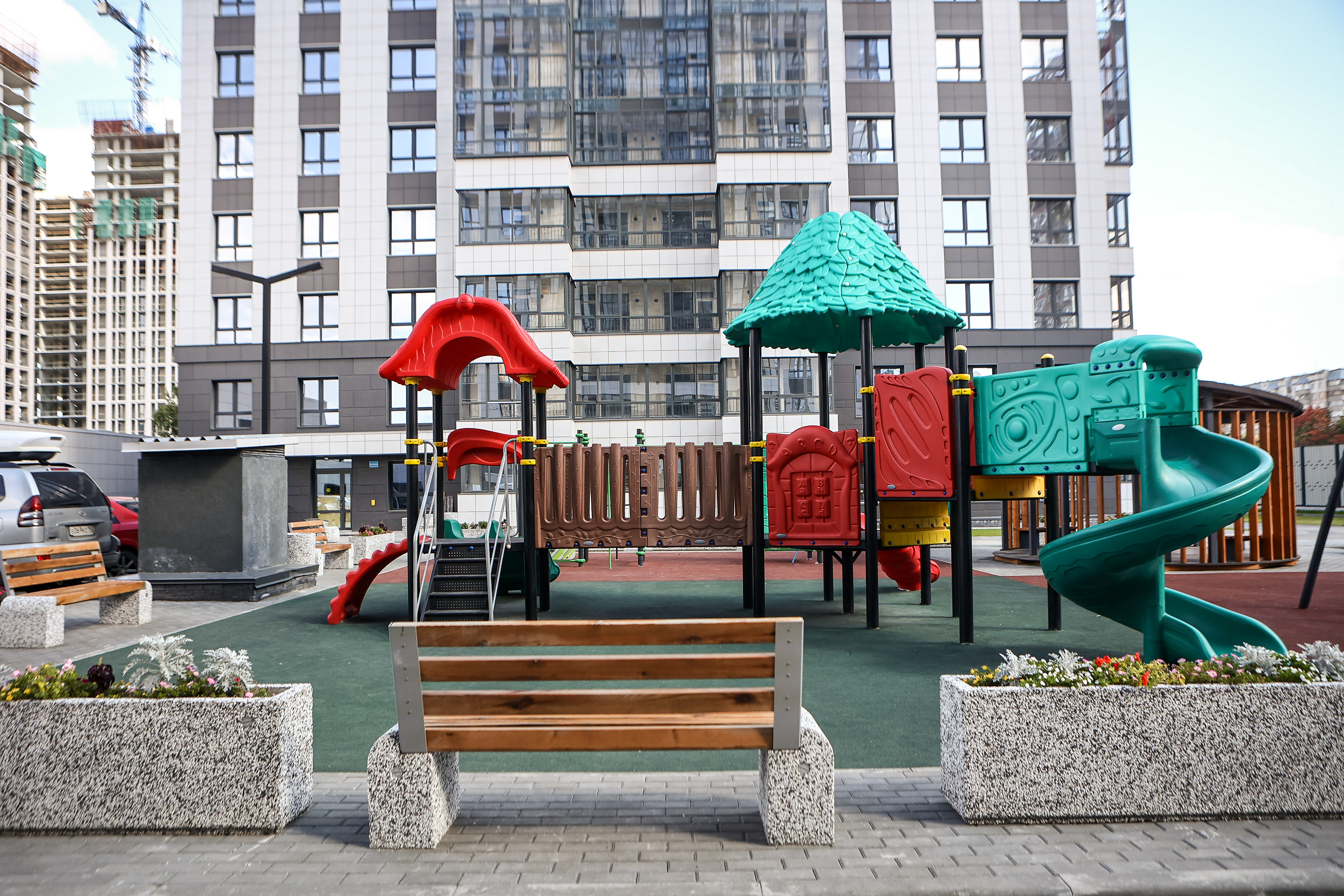 В холлах на первых этажах домов обустроили зоны ожидания с мягкой мебелью, журнальными столами и светильниками. Жилые помещения начинаются с третьего этажа. У квартир, расположенных на верхних этажах, предусмотрены террасы.