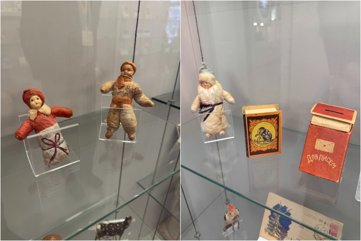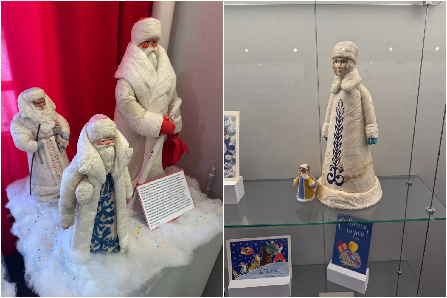Под ёлку часто ставили фигуры Деда Мороза и Снегурочки. В музее их тоже можно увидеть. Самому старому экспонату около 90 лет.