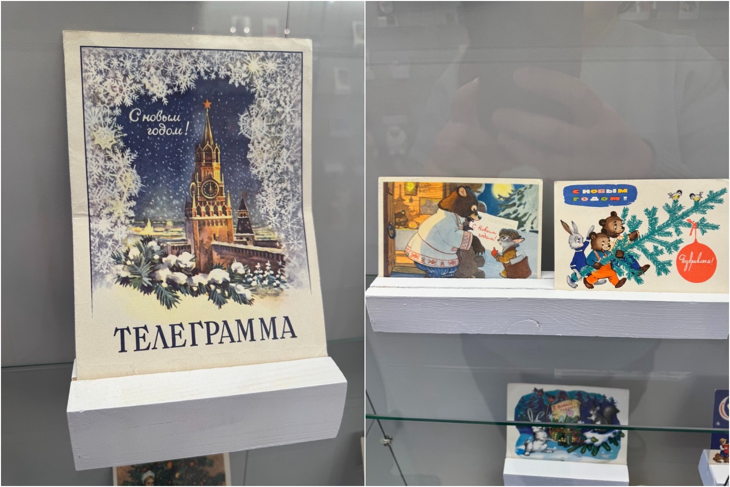 Накануне Нового года было принято обязательно отправлять всем близким и друзьям открытки с поздравлениями. Люди старшего поколения с радостью увидят в коллекции знакомые с детства сюжеты. А чтобы узнать, что на написано с обратной стороны, достаточно навести камеру на QR-код на витрине.