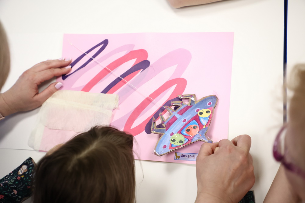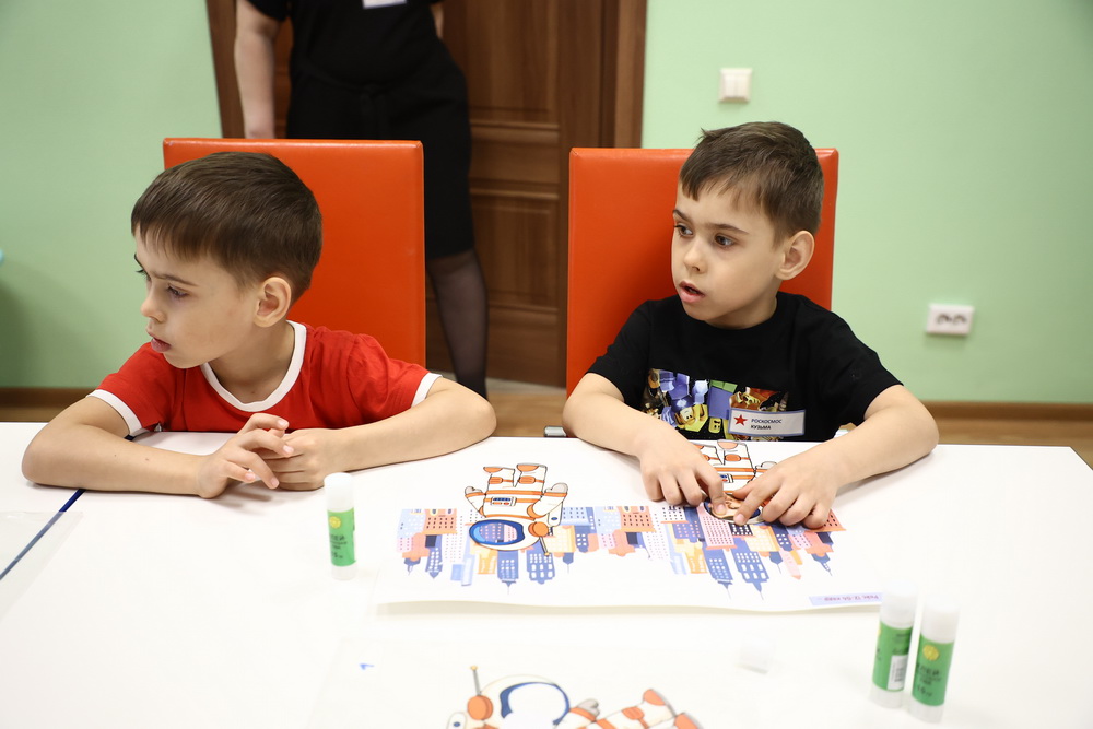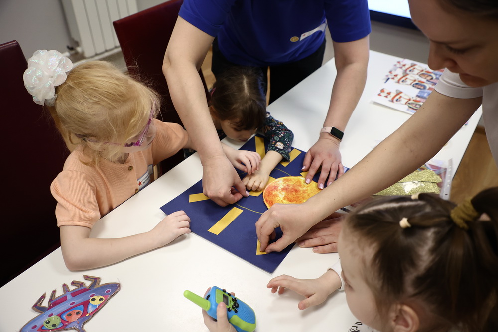 Для гостей организовали интерактивные зоны, игры и мастер-классы. На одном из них малыши освоили простые анимационные приёмы и сами собрали мини-сюжеты из космических элементов.