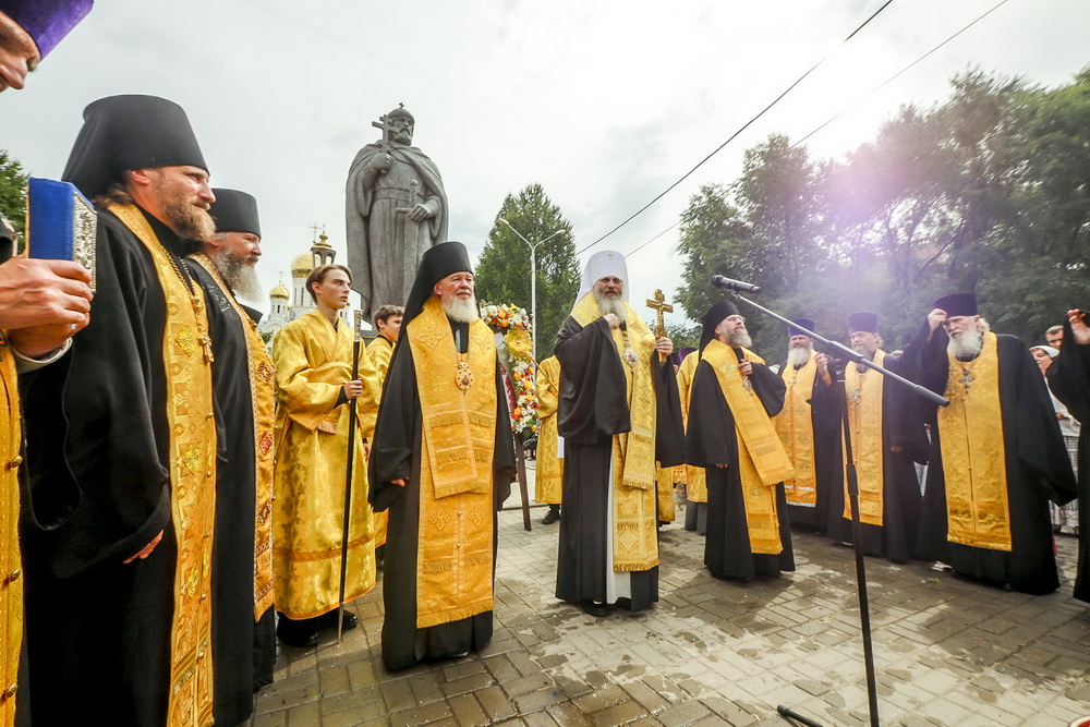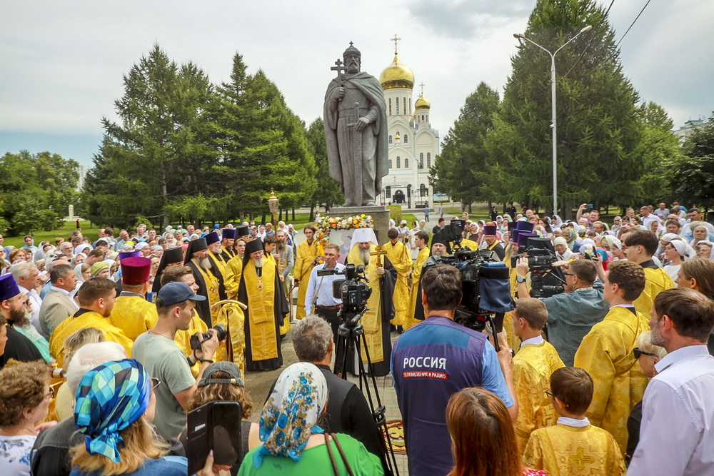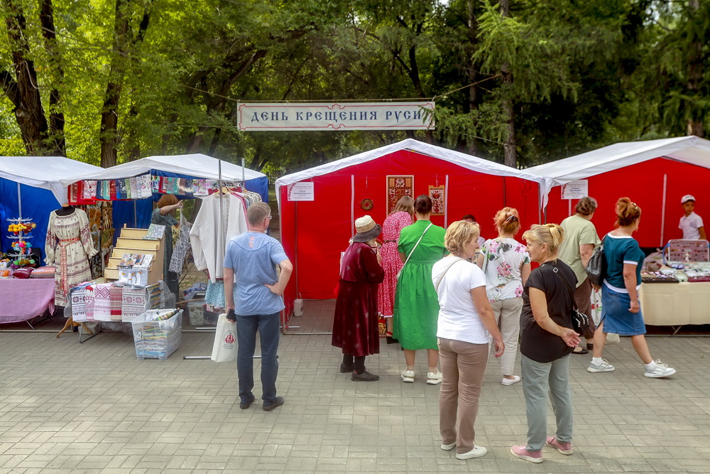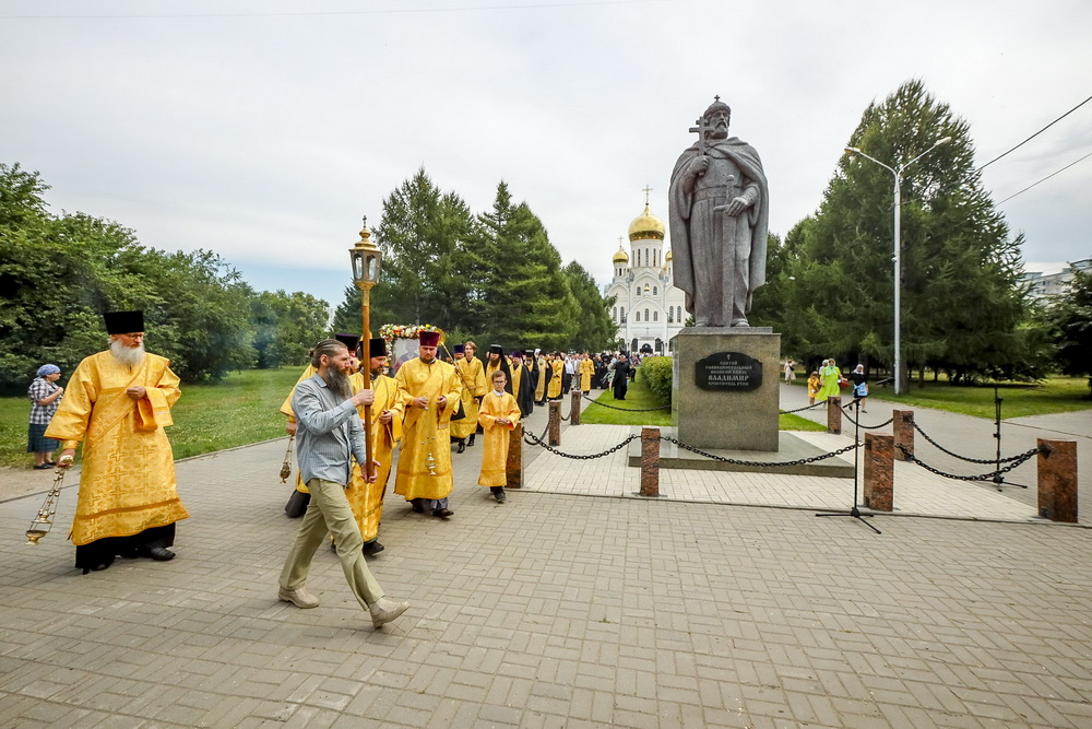 Праздник начался с литургии и молебна в Троице-Владимирском соборе на улице Филатова. Затем собравшиеся проследовали крестным ходом к памятнику святому равноапостольному князю Владимиру в Троицком сквере. А в полдень там открыли развлекательную программу с различными активностями и выступлениями творческих коллективов.