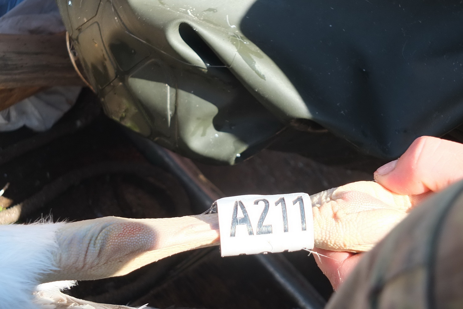 Кольцевание кудрявого пеликана на озере Надыр (2025 год)