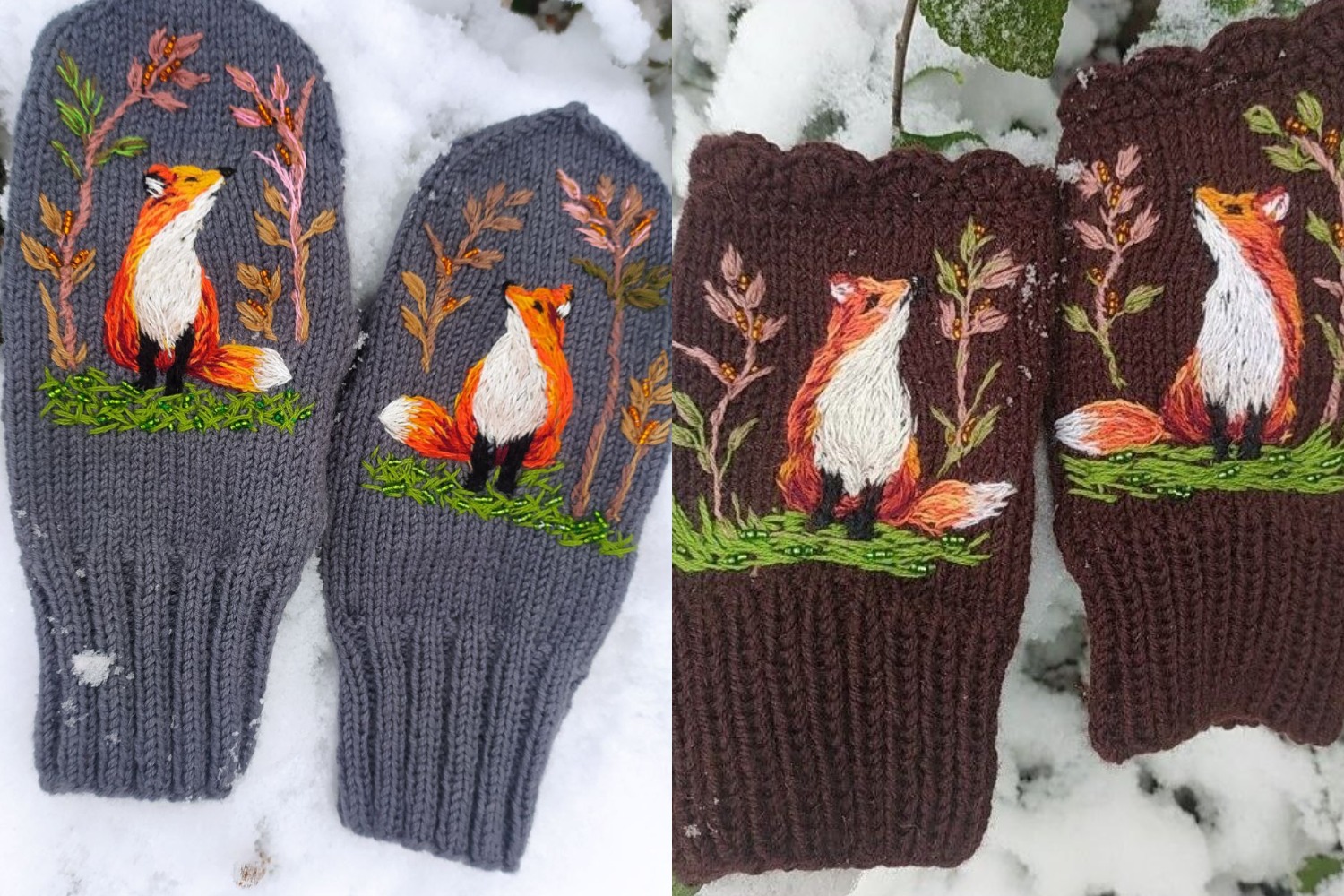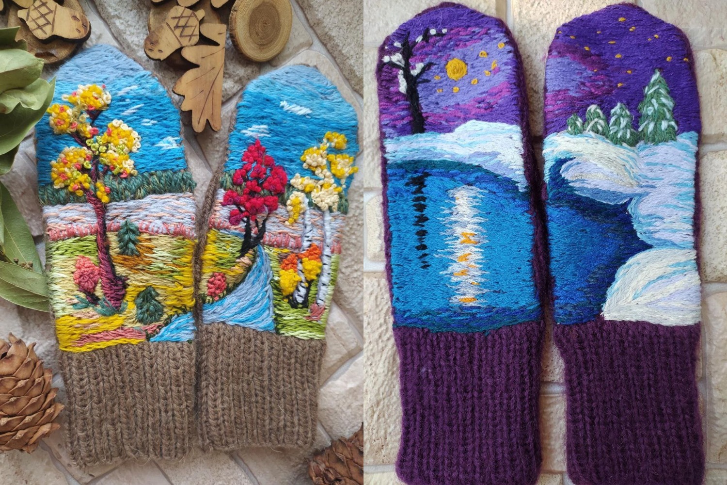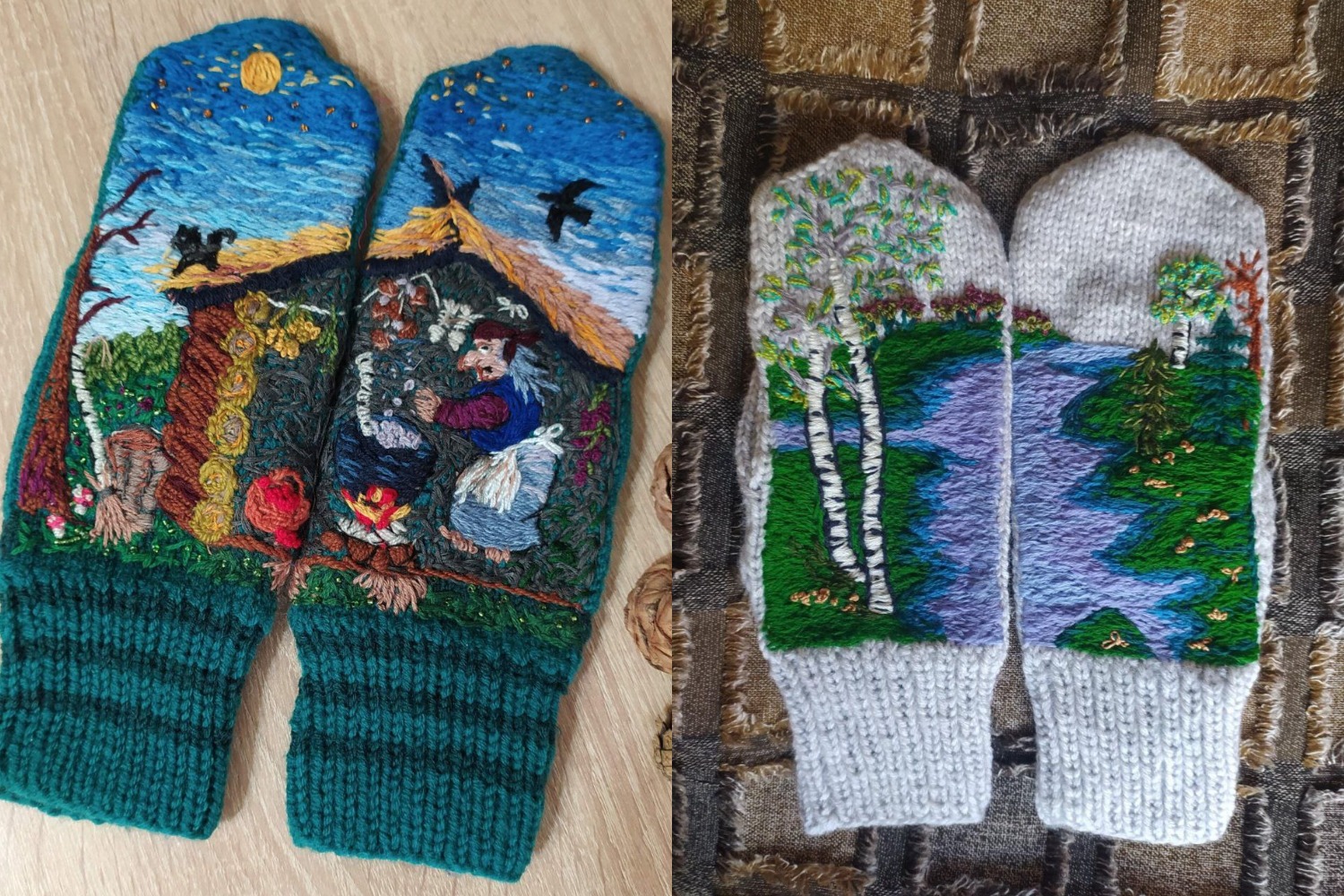 Для Натальи Сизовой вязание — не просто хобби, а неотъемлемая часть жизни. Этому ремеслу сибирячка научилась ещё до школы — раньше, чем освоила чтение. Первую сложную пару в технике жаккард Наталья связала в девять лет, а восемь лет назад открыла для себя вышивку, которая полностью преобразила её творчество. Теперь на миниатюрных рукавицах рождаются целые миры: иллюстрации к русским сказкам, пейзажи и натюрморты, поражающие каждого, кто только взглянет на них. Сюжеты возникают в процессе.