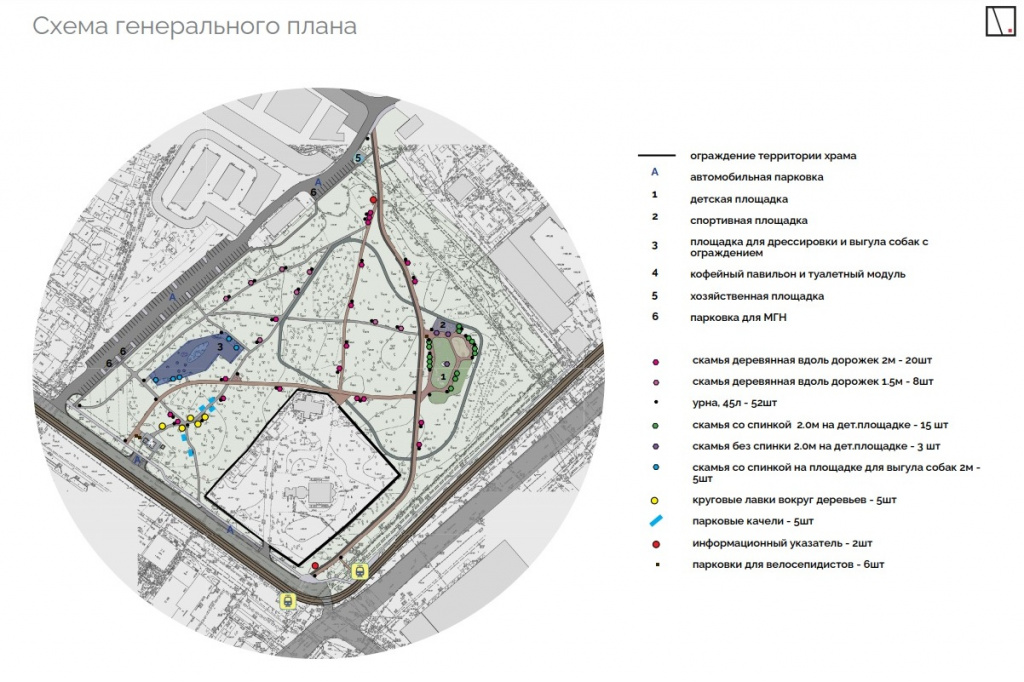 В проекте указано место для размещения кафе и общественной уборной. После благоустройства сквера будет проведена работа по поиску операторов, готовых установить модуль с кафе и туалетом, как в совмещённом, так и в раздельном варианте.