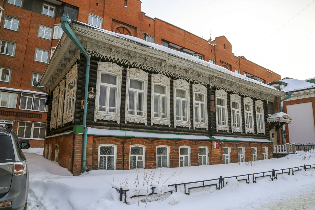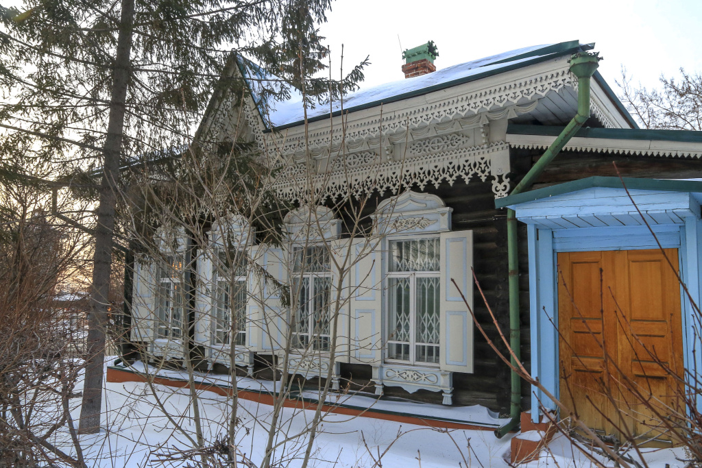 Рядом с конторой возвели двухэтажный особняк Сурикова (Большевистская, 5). Наличники с орнаментальным и геометрическим узором выполнили мастера из Барнаула.