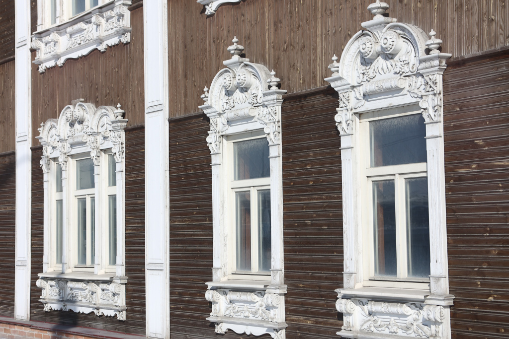 Богатую резьбу, которую мы видим сегодня на фасадах старинных особняков в центре города, воссоздали по эскизам и фотографиям. Примером полного восстановления исторического здания может служить дом купца Ивана Тимофеевича Сурикова (женская гимназия П. А. Смирновой) на улице Ленина, 11.