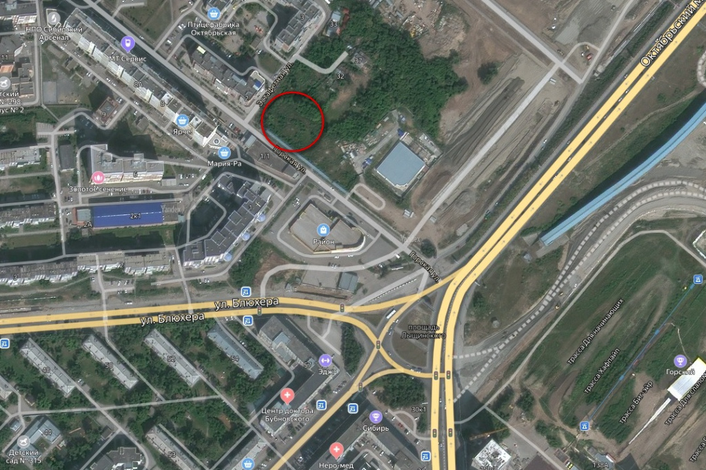 В Ленинском районе Новосибирска на улице Горской по соседству со строительством четвёртого моста и новой ледовой арены региональная епархия РПЦ планирует возвести небольшой деревянный храм в честь иконы Божьей Матери «Державная».