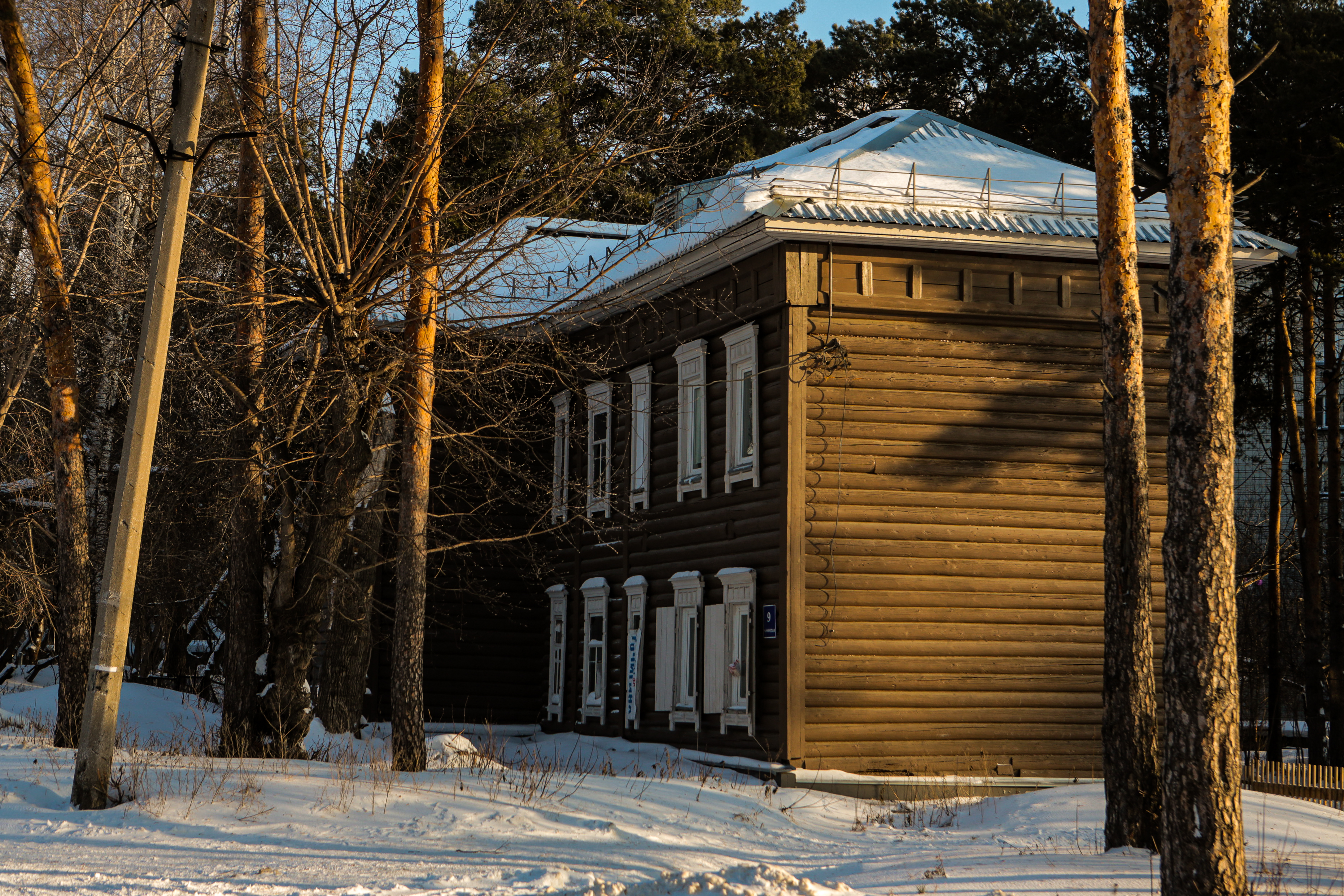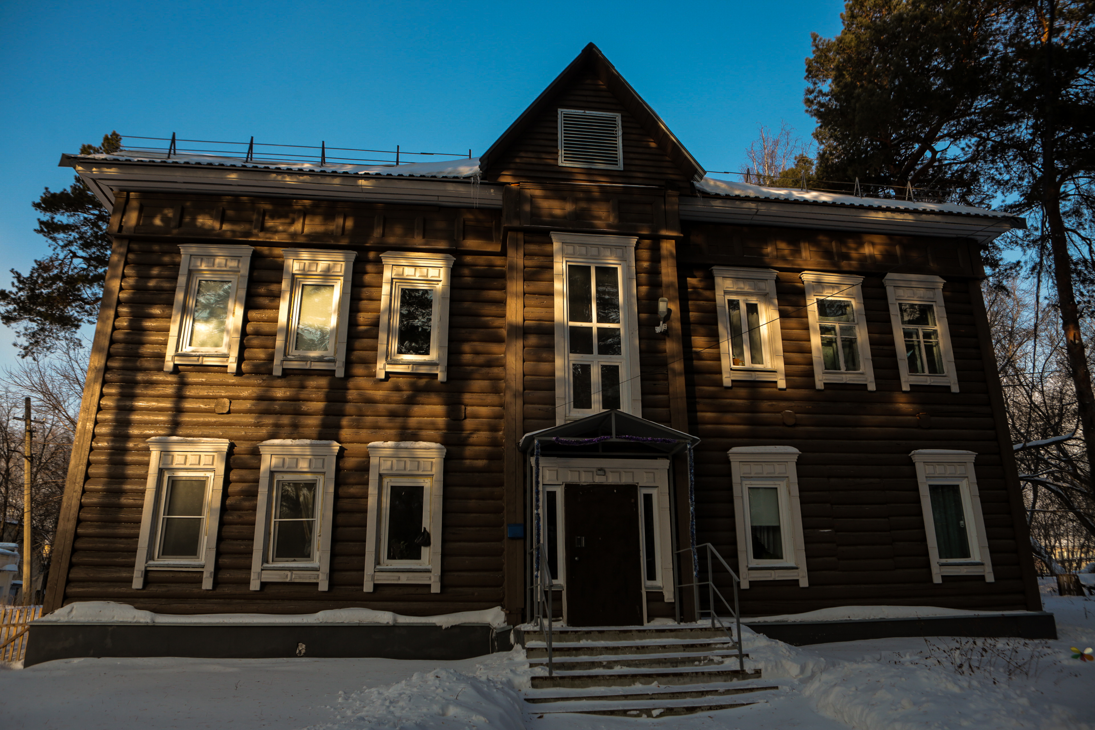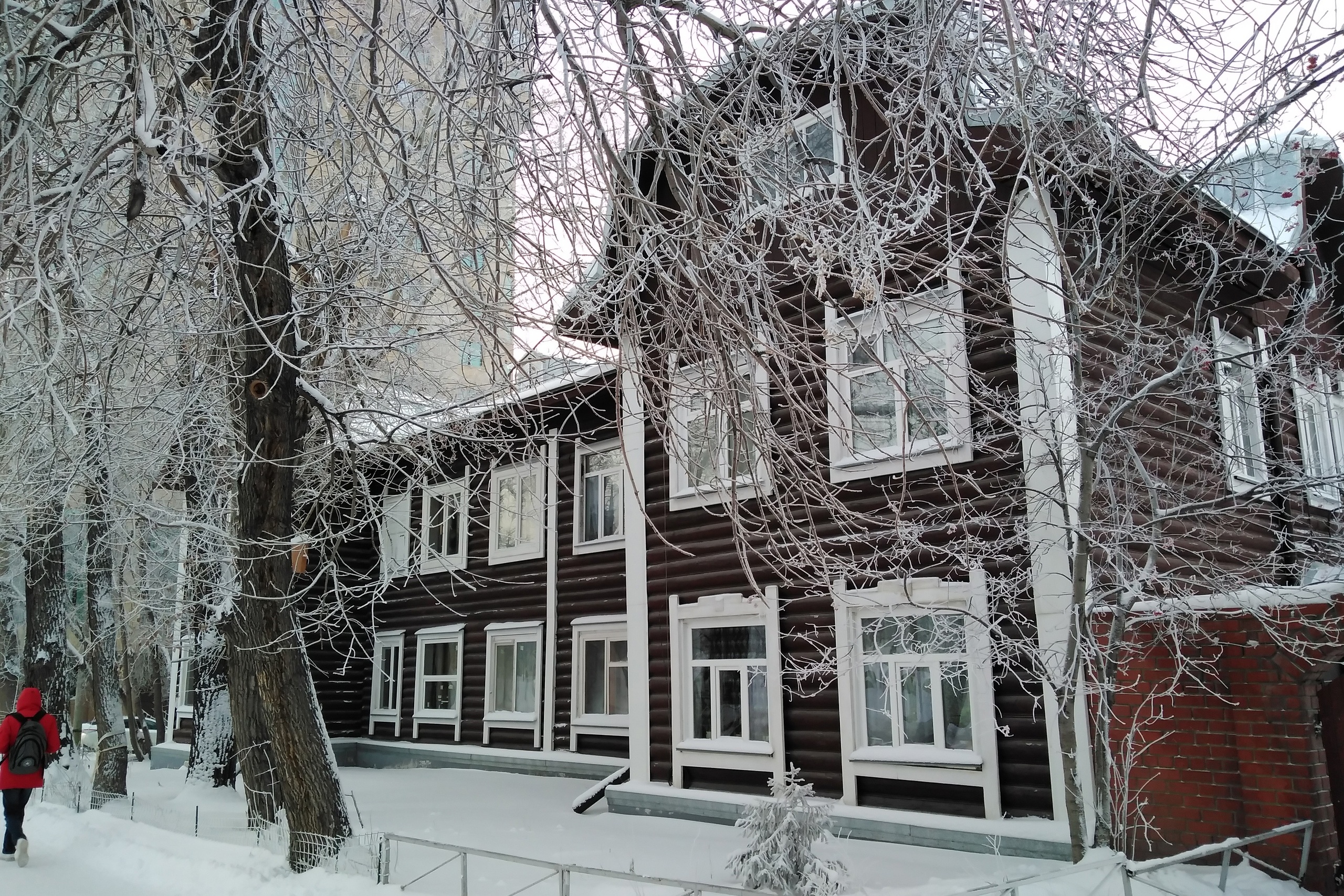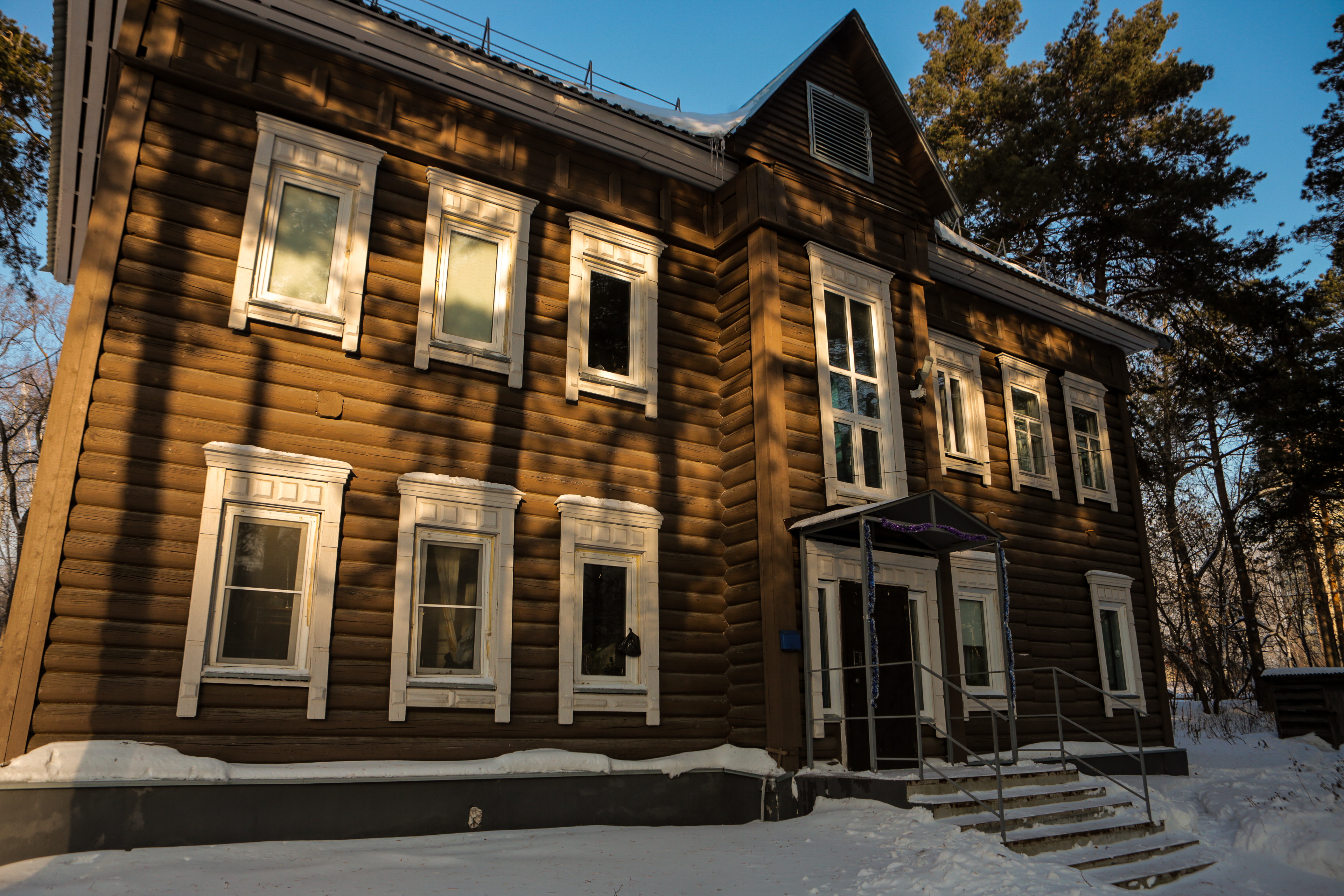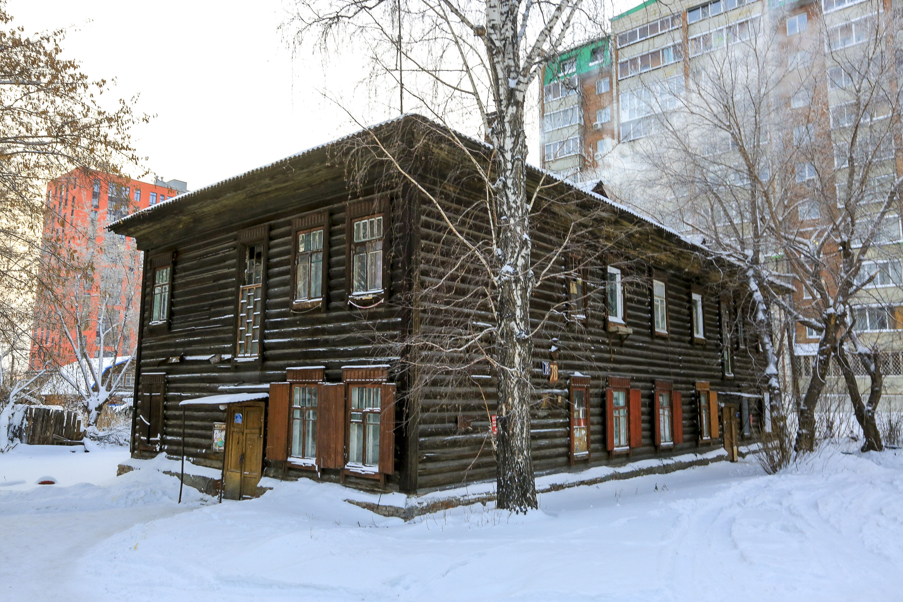 В Заельцовском районе прямо на территории горбольницы можно увидеть ещё одно удивительное жилое здание. Его адрес — улица 1-я Клиническая, 9. Это бревенчатая двухэтажка, которую возвели в 1939 году для сотрудников медицинского учреждения. Она не признана аварийной и не имеет статуса памятника.