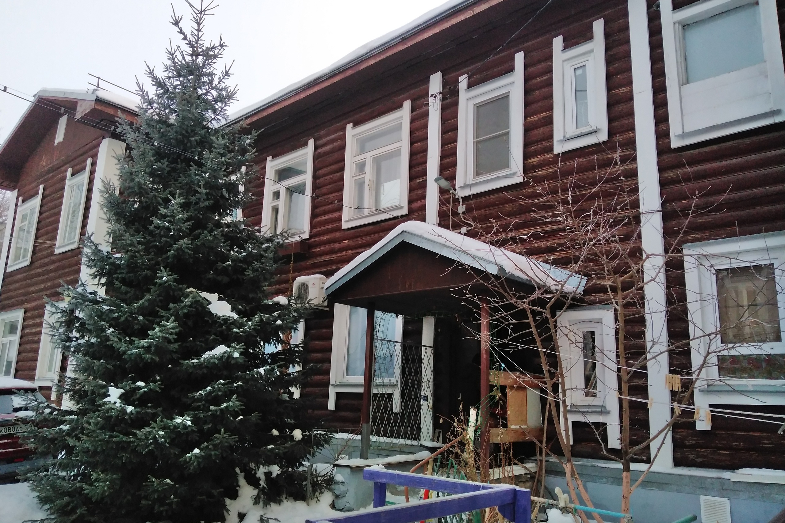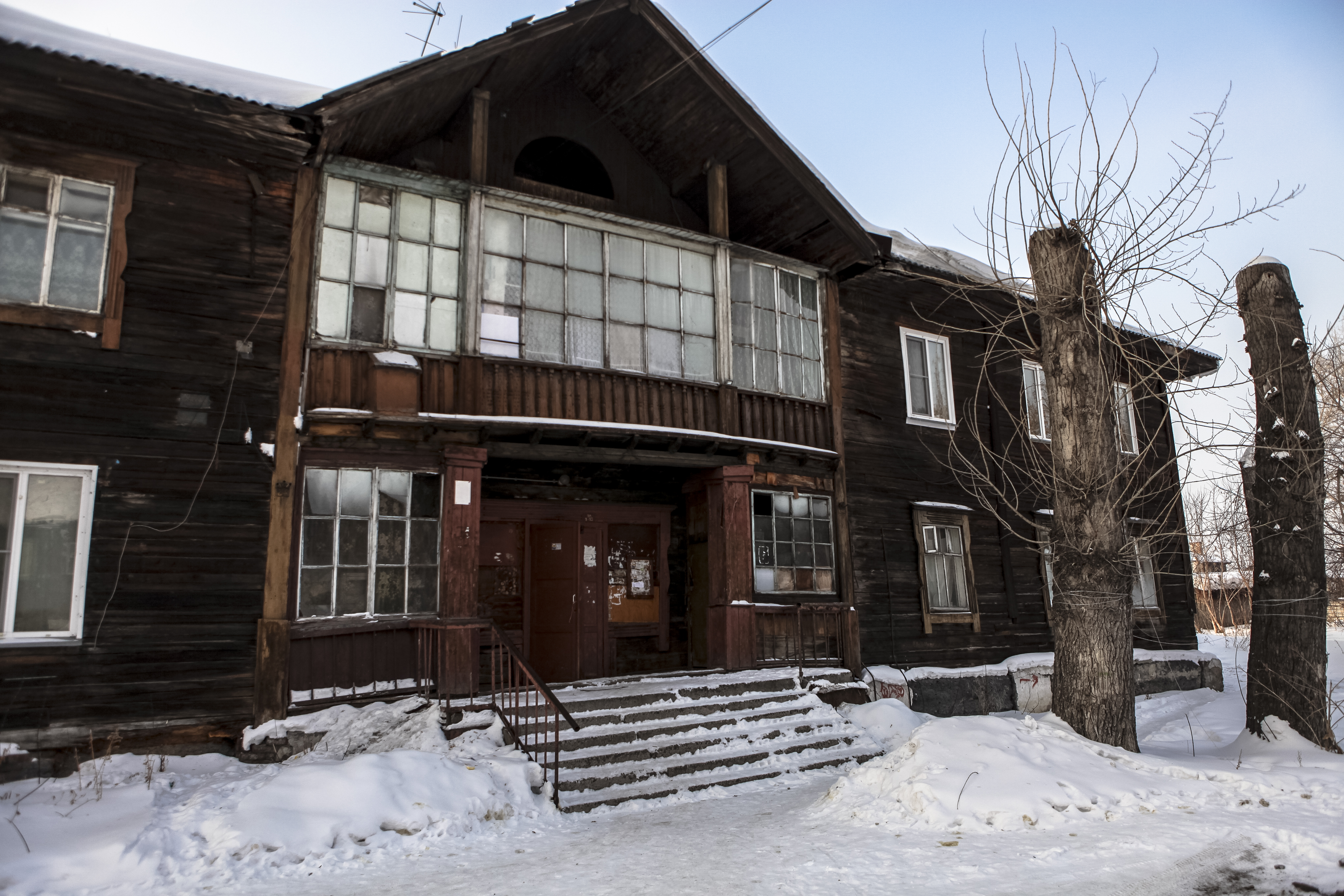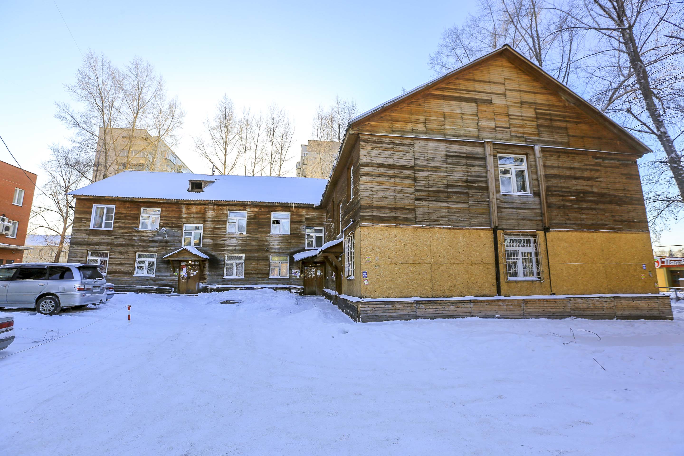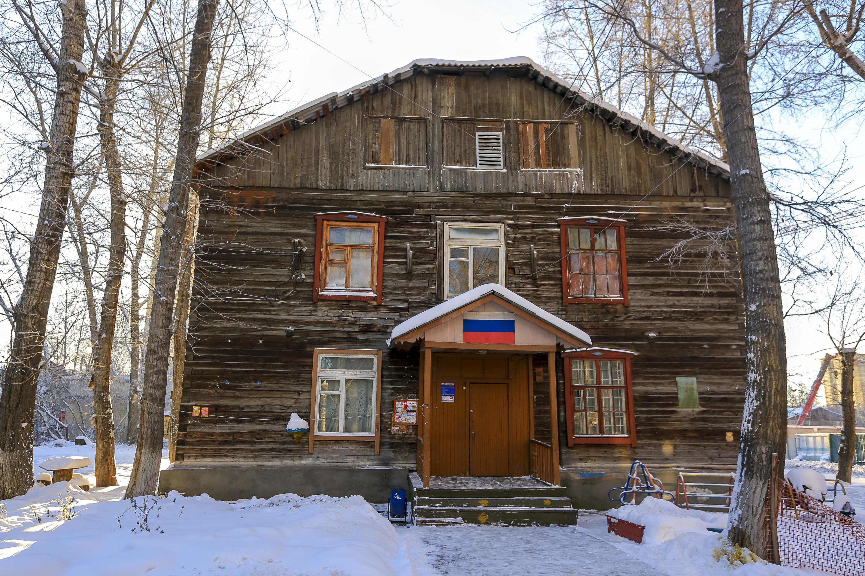 Этот двухэтажный бревенчатый дом построили в 1930 году. Два подъезда, восемь квартир. В 2018 году объект признали аварийным и подлежащим сносу. Управление по жилищным вопросам мэрии должно расселить людей до 2026 года включительно.
