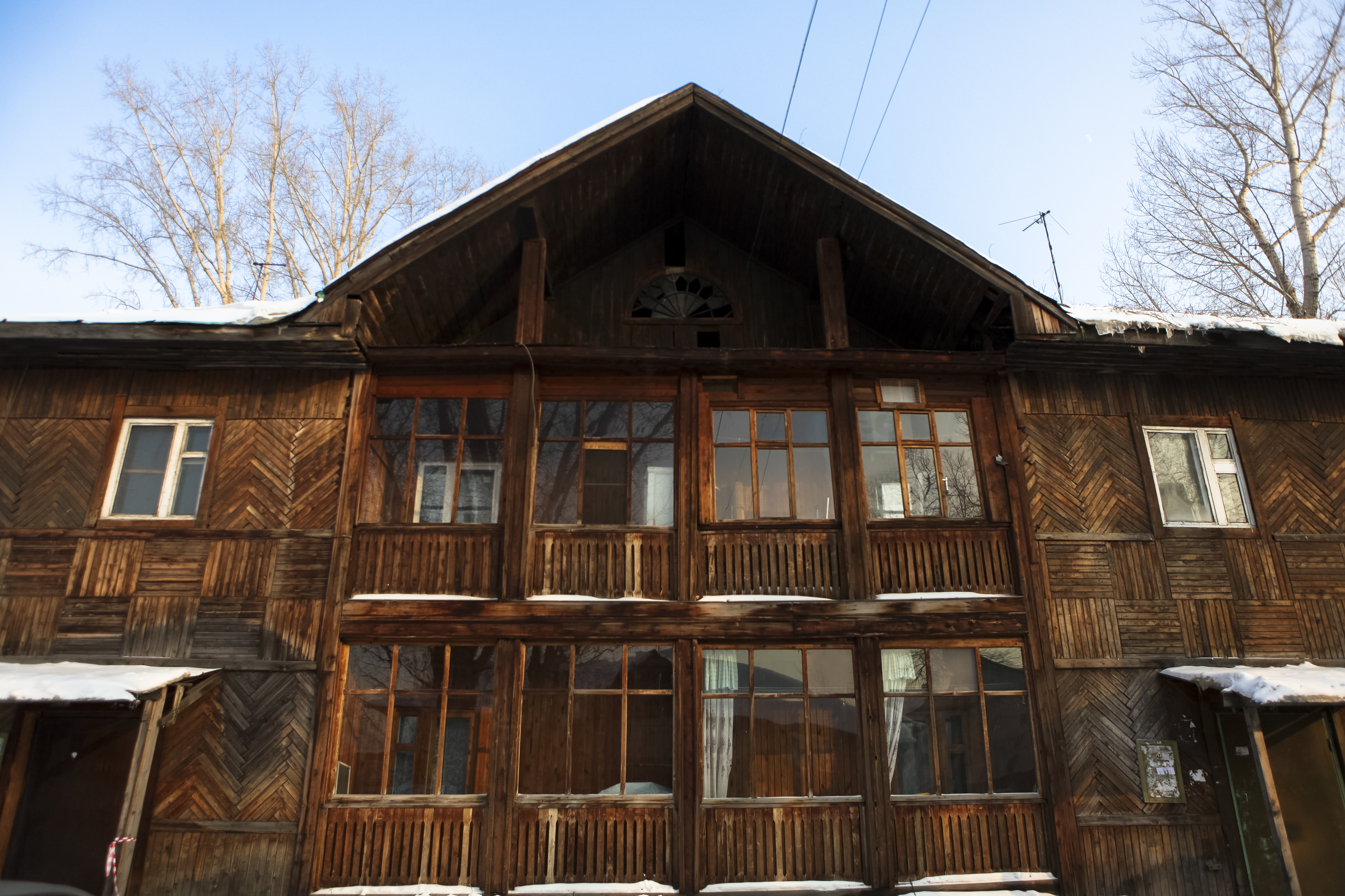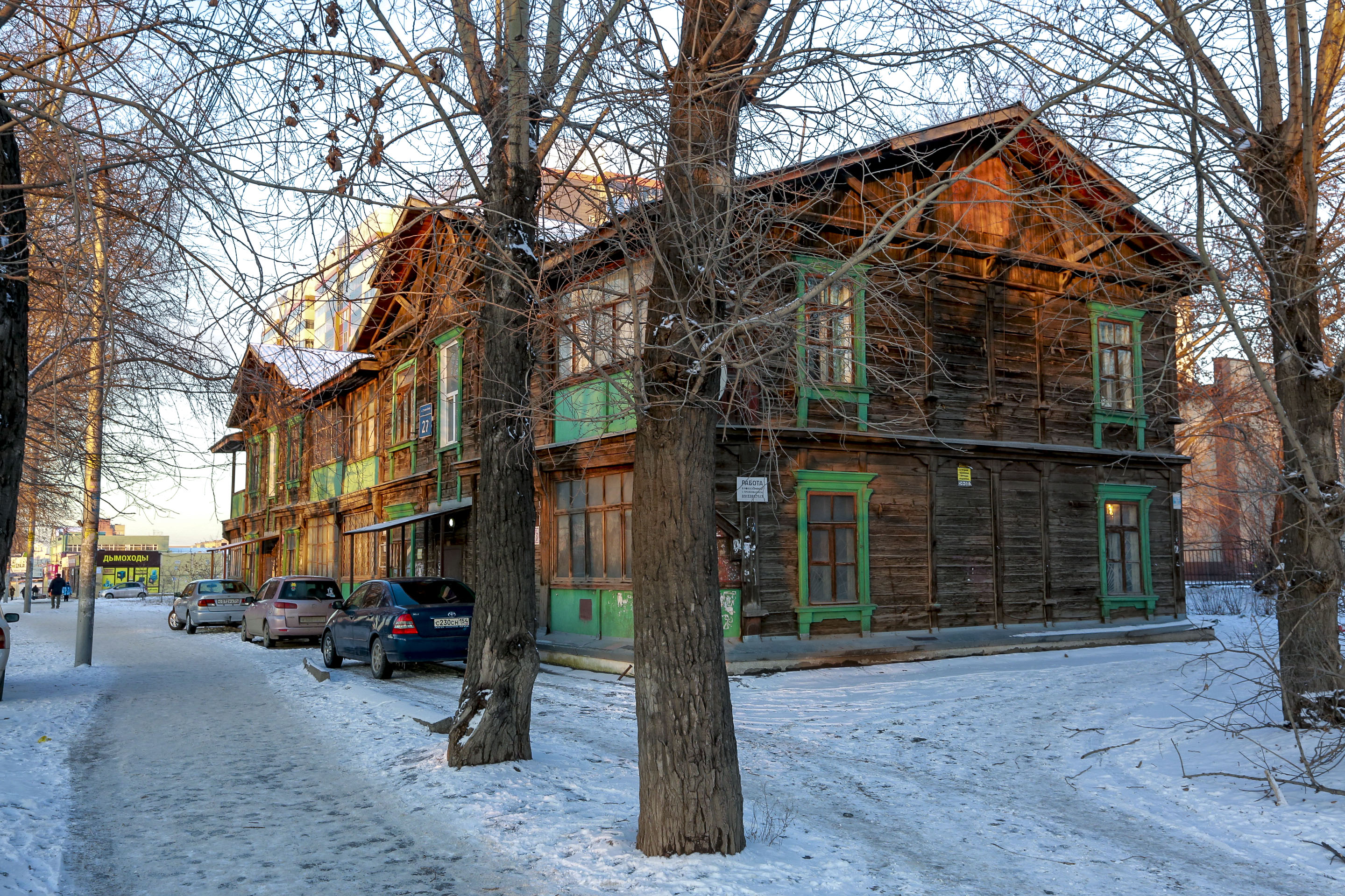 В Новосибирске до сих пор сохранились многоквартирные деревянные дома — кое-где можно встретить даже целые кварталы. Возраст некоторых давно перешагнул планку в 100 лет. Одна из самых древних деревяшек находится в центре Новосибирска — на Коммунистической. Охранного статуса не имеет, поэтому уже официально идёт под расселение и снос. Некоторым деревянным домам повезло больше — их оберегает государство. Как, например, стоящий прямо за «Универсамом» образец дореволюционного зод...