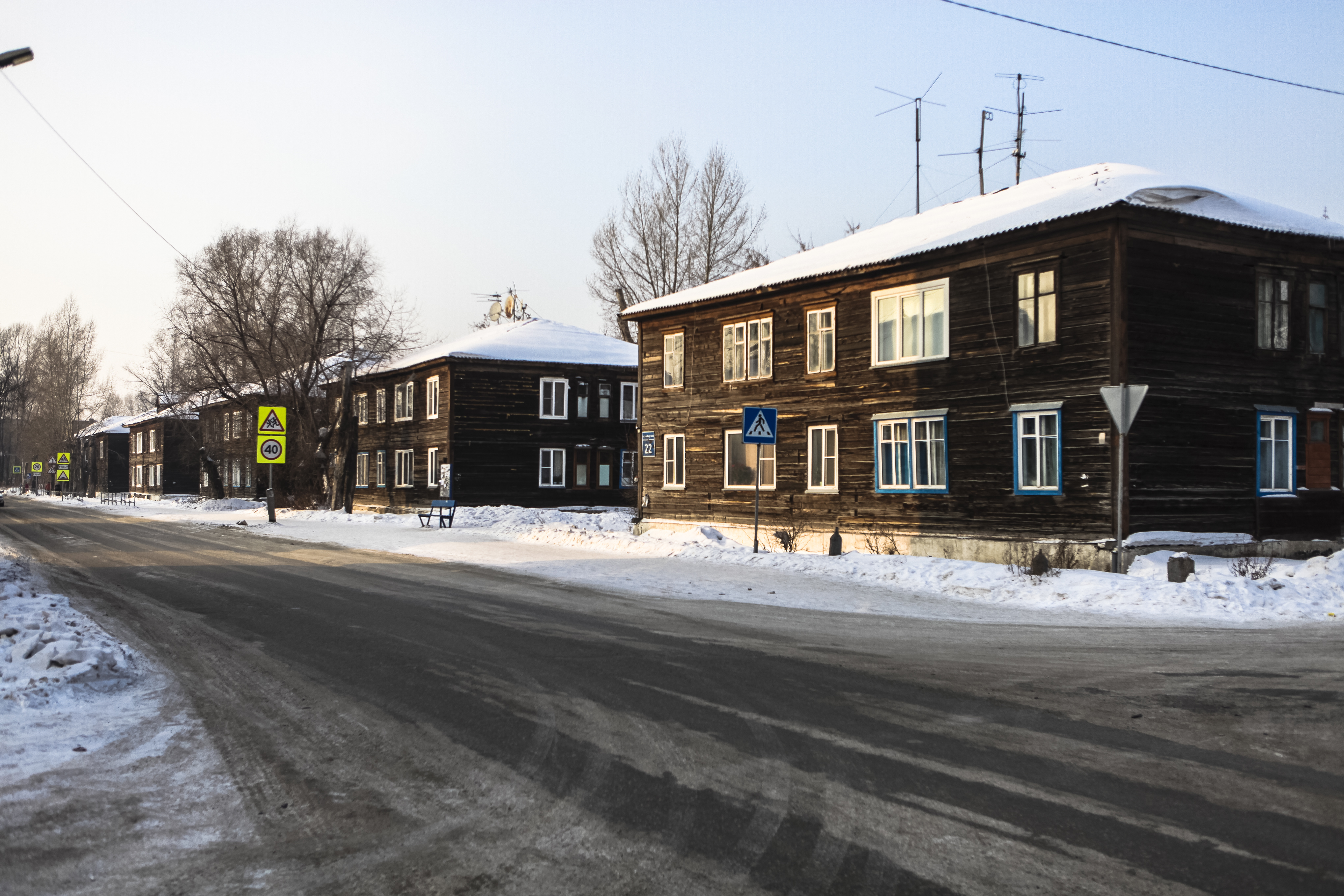 До войны и в начале 40-х годов деревянные дома возводили как временные для работников предприятий и ведомств. Туда переселяли людей из ветхих изб и жилья с земляным полом. Квартиры обогревали печами. Санузлы, сараи для дров и угля, а кое-где даже бани строили из досок во дворах. В 60-80-х годах дома благоустраивали, заводили в них воду, отопление, канализацию.