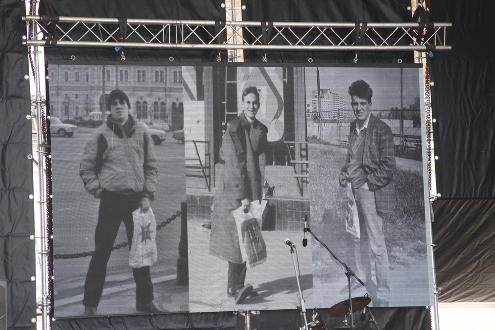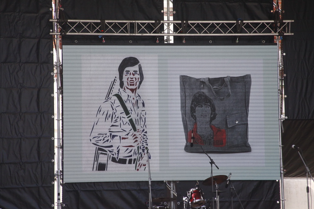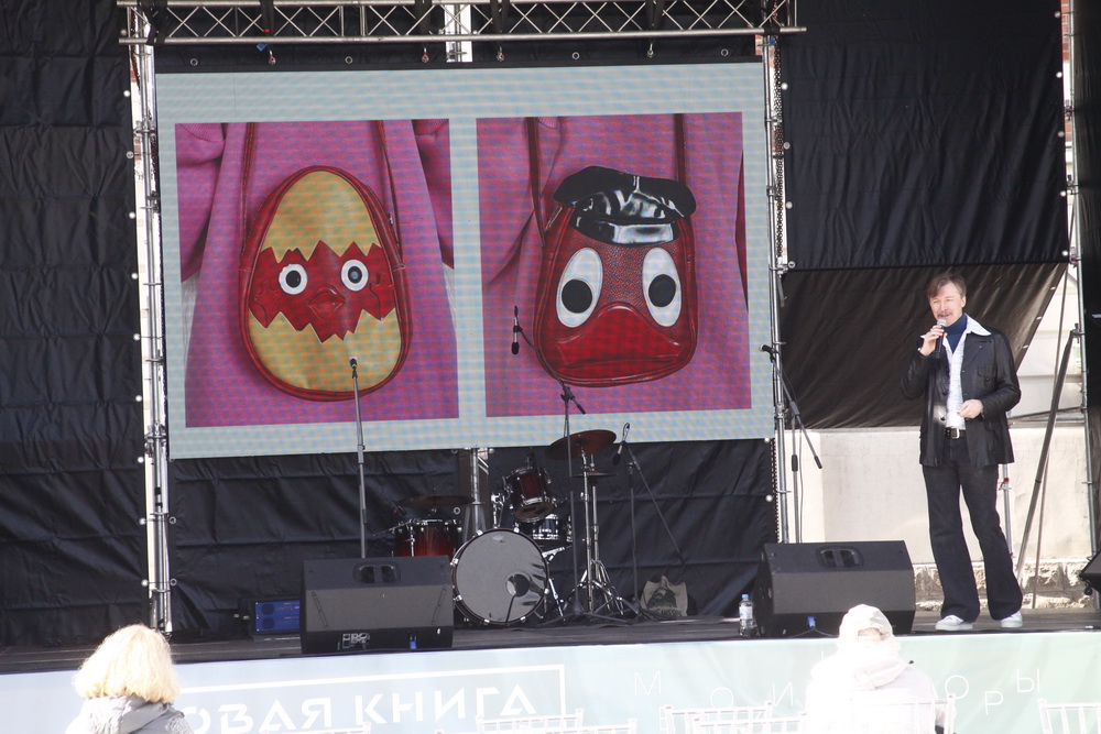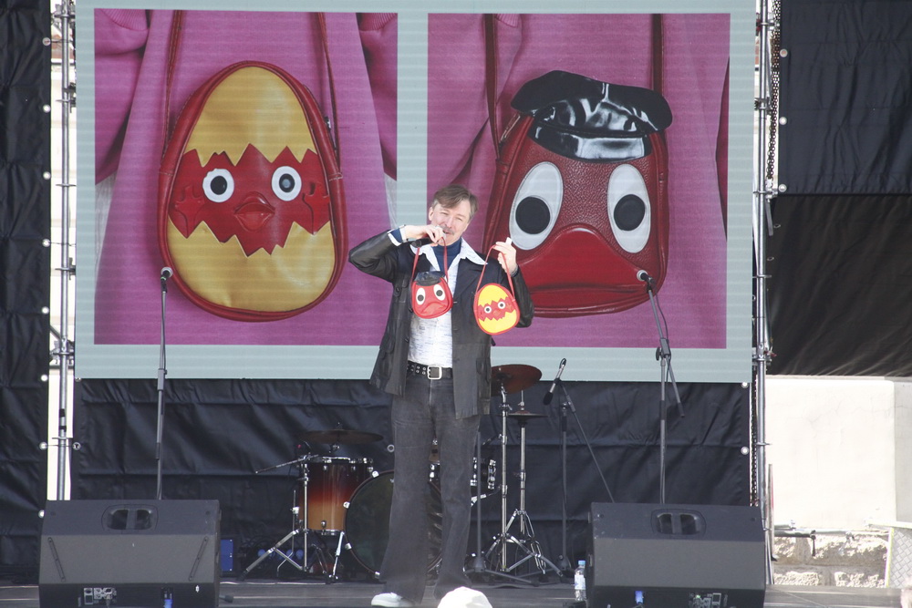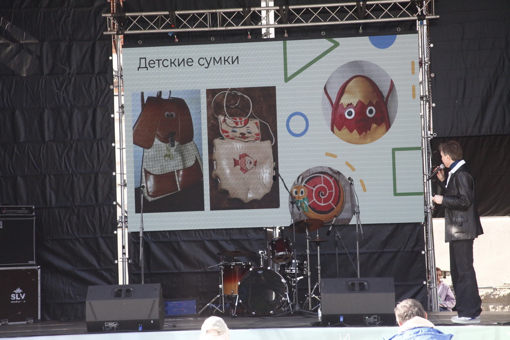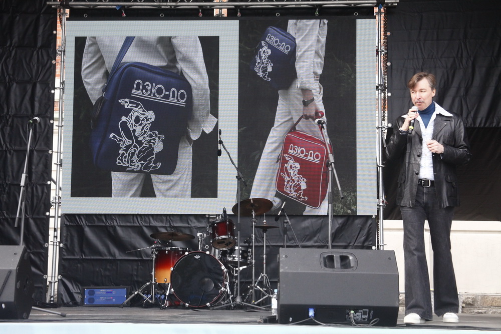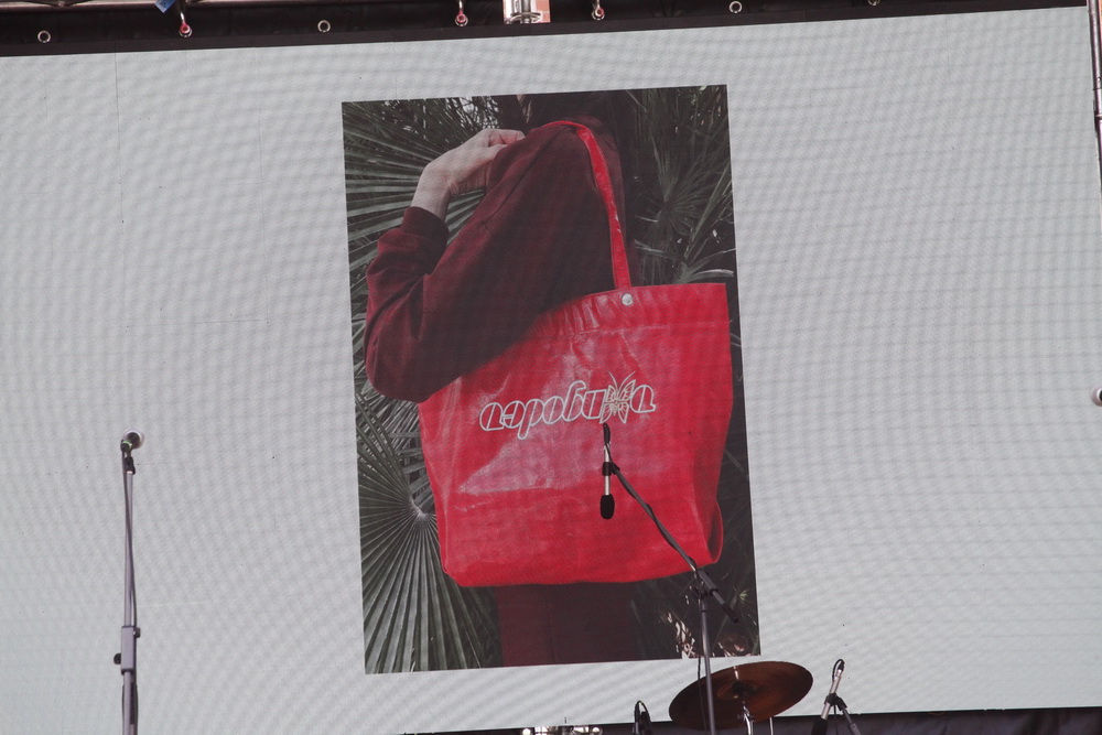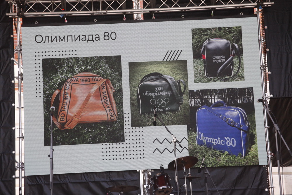 Ещё одна особенность того времени — сумки с принтами «хенд мейд», удивляющие красивым «идиотизмом» дизайна. Зрителям продемонстрировали, как выглядели советские шоперы с изображением Дина Рида, олимпийского медведя и группы Queen.