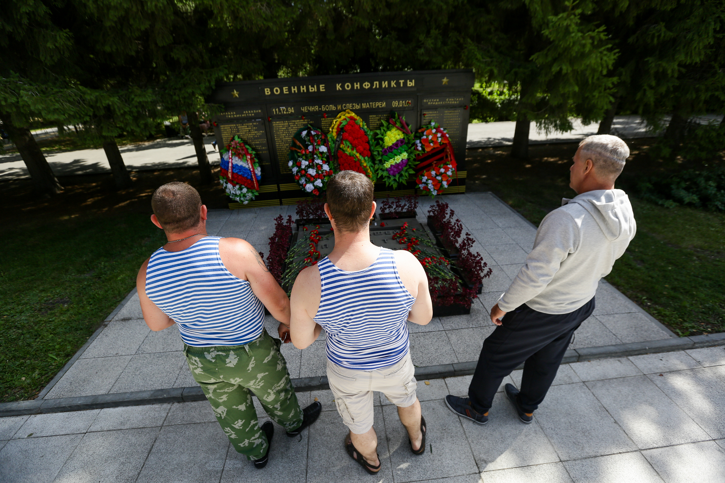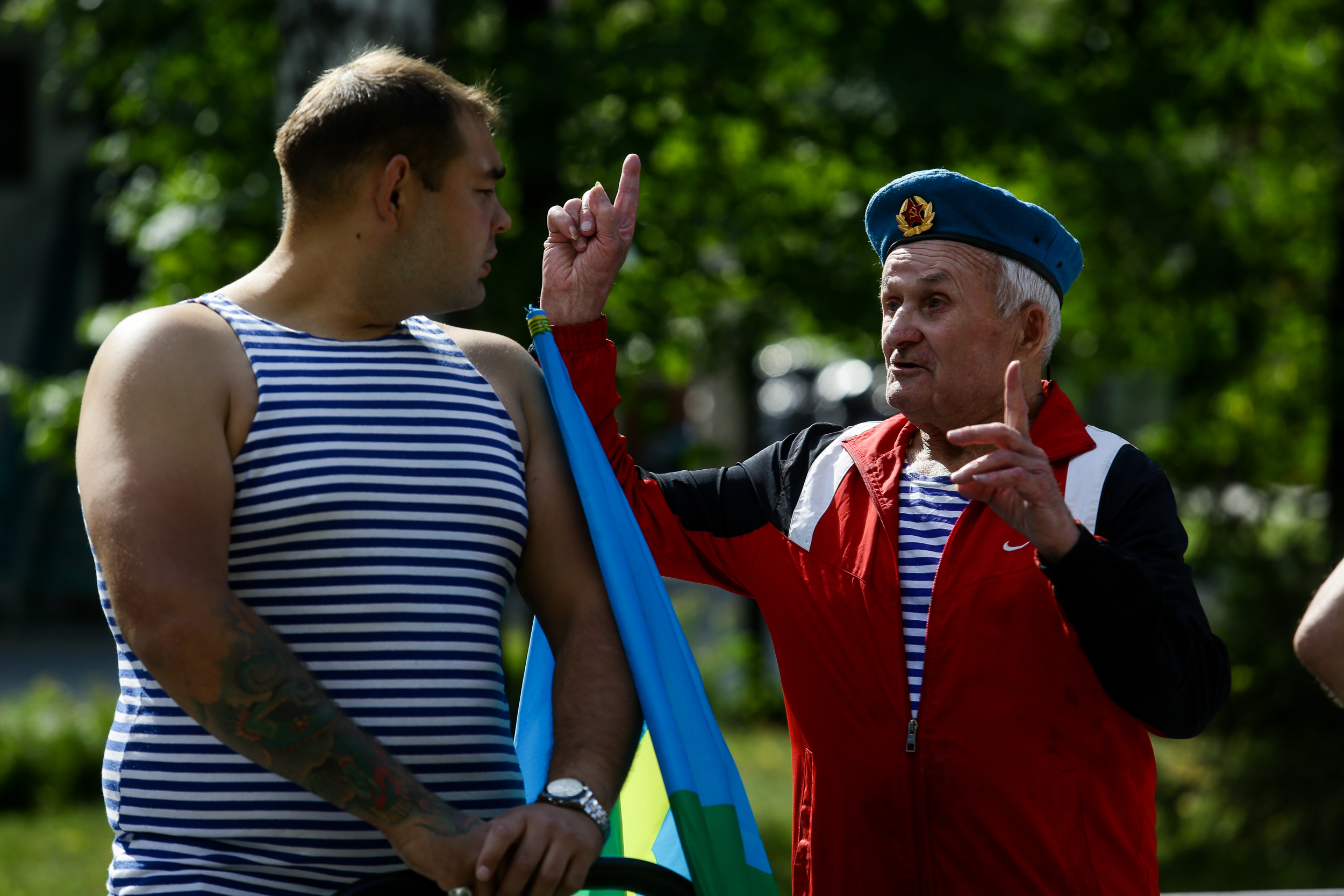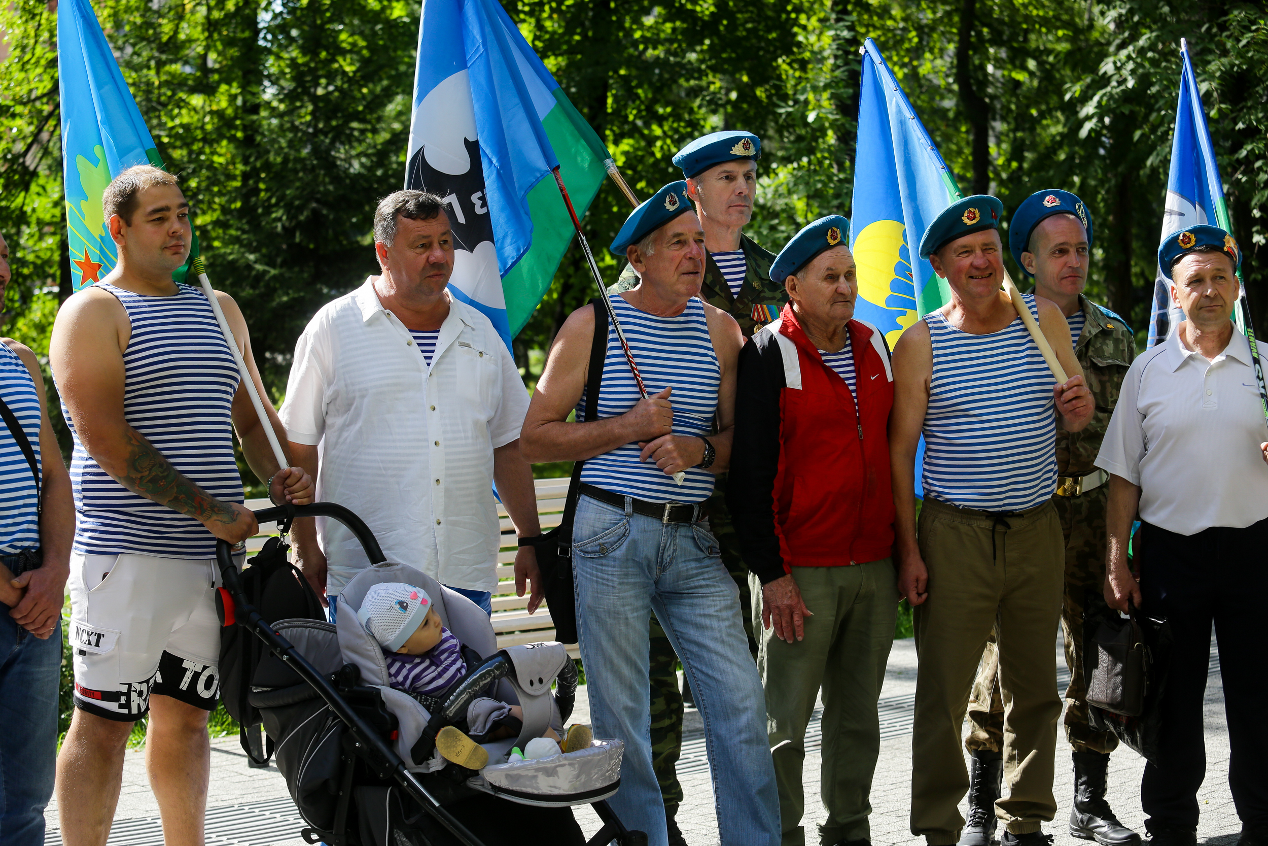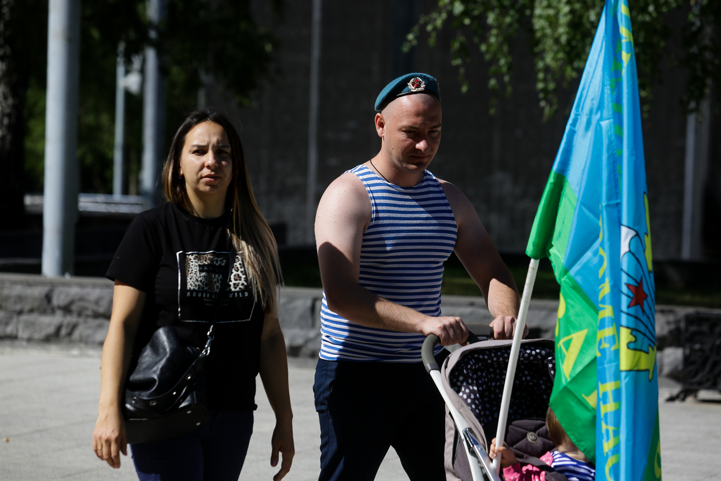 Десантники в тельняшках скромно отмечают День ВДВ в Новосибирске