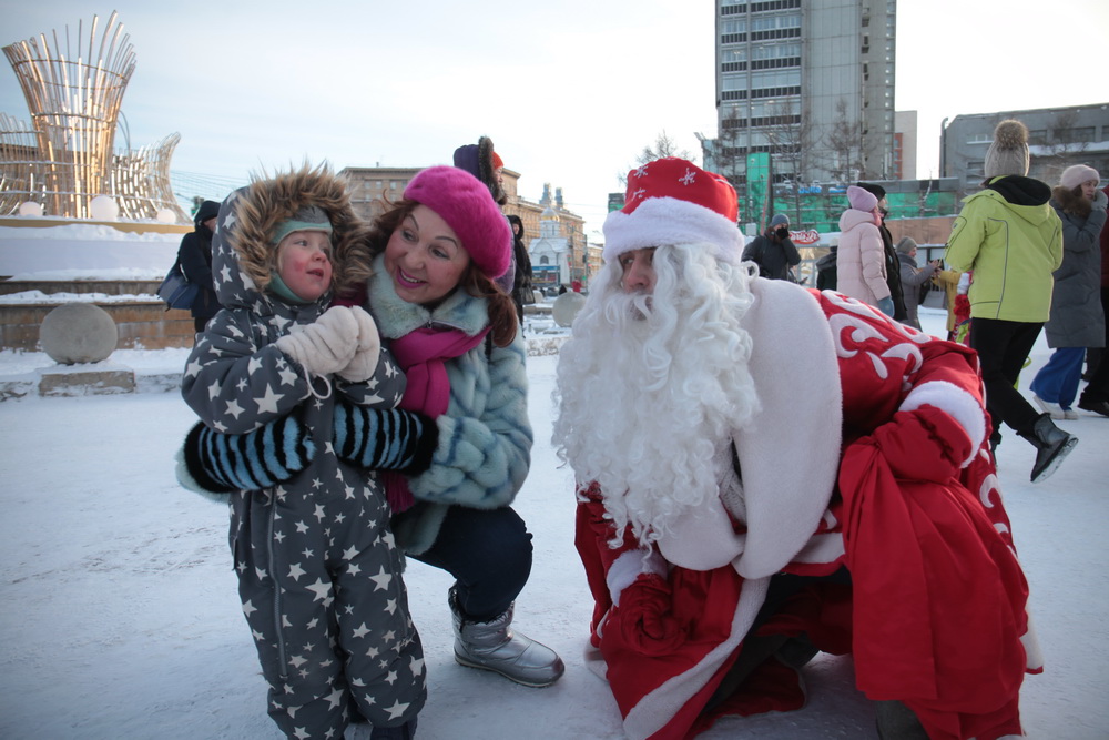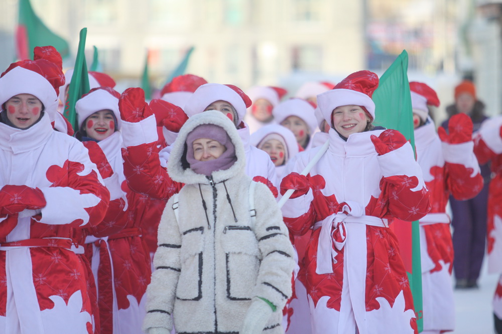 «Вкусно всё у вас тут, приятно. Народ добродушный! Всё хорошо у вас тут, добра много», — поделился впечатлениями о Новосибирске один из Дедов Морозов.