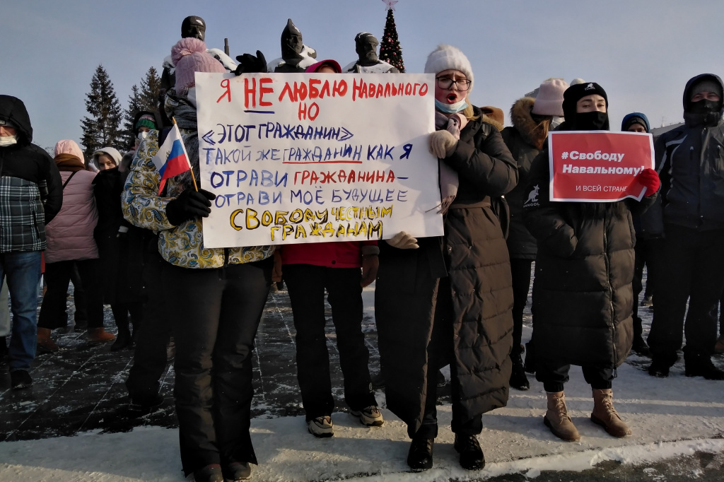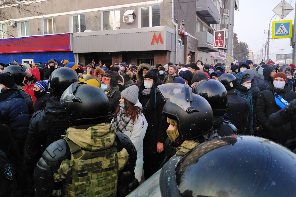 Сегодня, 23 января, в Новосибирске состоялась несанкционированная акция протеста в поддержку Алексея Навального. Больше 1000 человек вышли в центр города с требованием освободить оппозиционного блогера, задержанного в конце прошлой недели в аэропорту Шереметьево по делу «Ив Роше». Протестующих не смутили ни мороз, ни пандемия, ни связанный с нею запрет на массовые мероприятия.