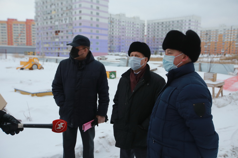 За оставшееся время нужно завершить внутреннюю отделку и обустроить детскую площадку. Последнее — самое сложное, учитывая зимнюю погоду. Подрядчикам приходится использовать неординарные методы.