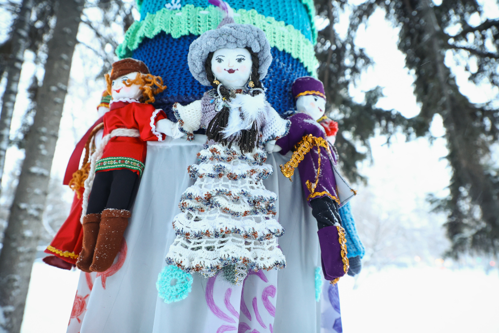Уютное пространство создали в сквере на улице 25 лет Октября. Деревья укутали в тёплые обновки, построили ледовый городок. Вязаный стрит-арт откроют 25 декабря вместе с Дедом Морозом и Смешариками.