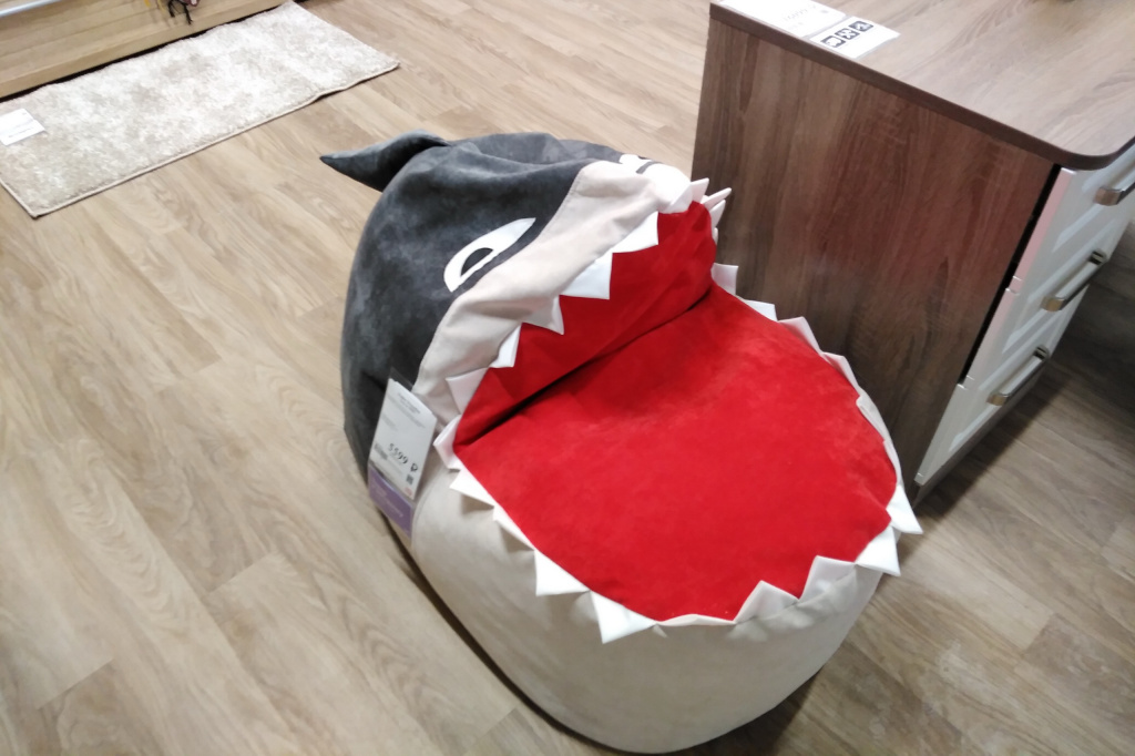 Есть большой выбор кресел-мешков. Самое забавное из них представляет собой акулу с разинутой пастью. Стоит такое кресло 5559 рублей.