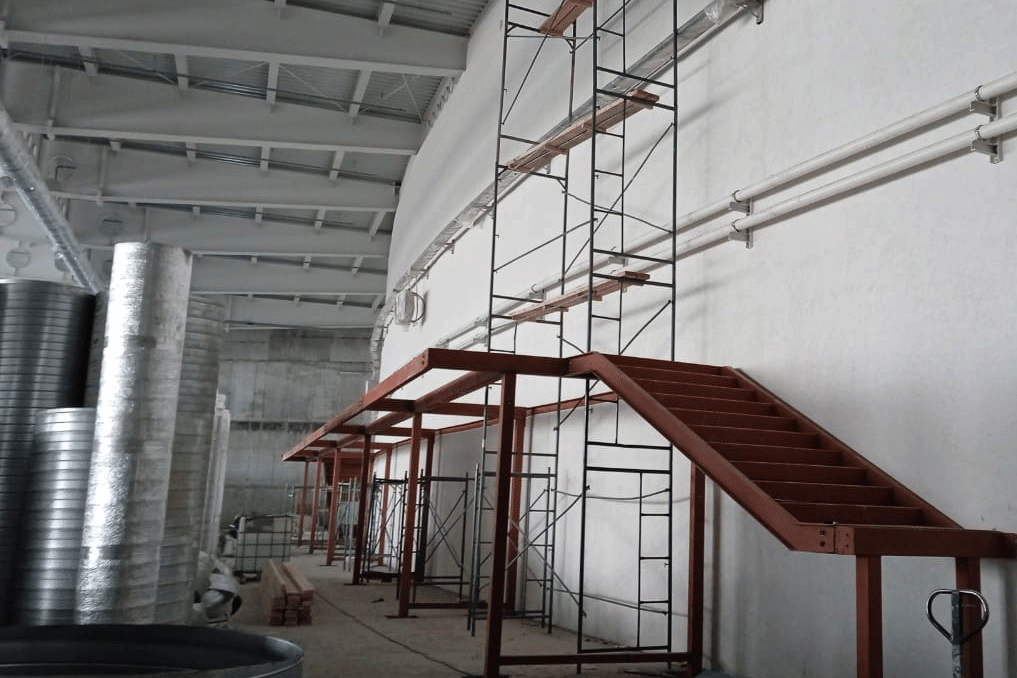 Подключение коммуникаций позволит в полном объёме начать отделку внутри спорткомплекса. Сейчас в помещениях обустраивают системы противопожарной безопасности, вентиляции, кондиционирования и передачи информации.