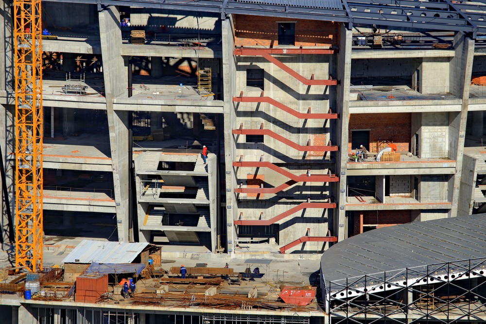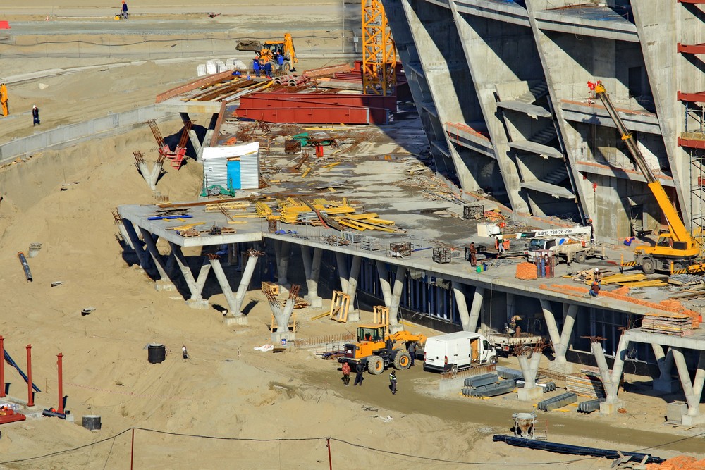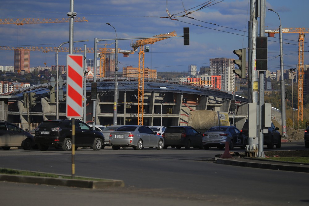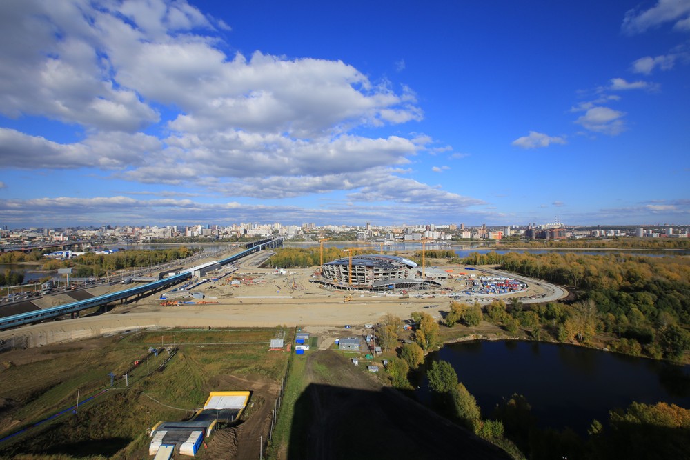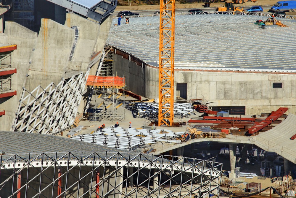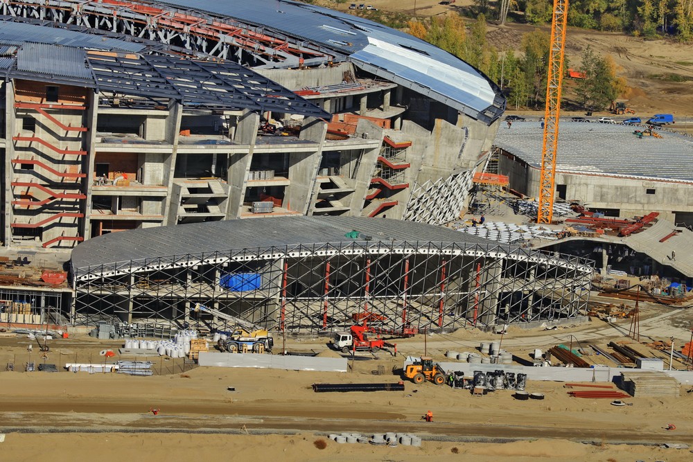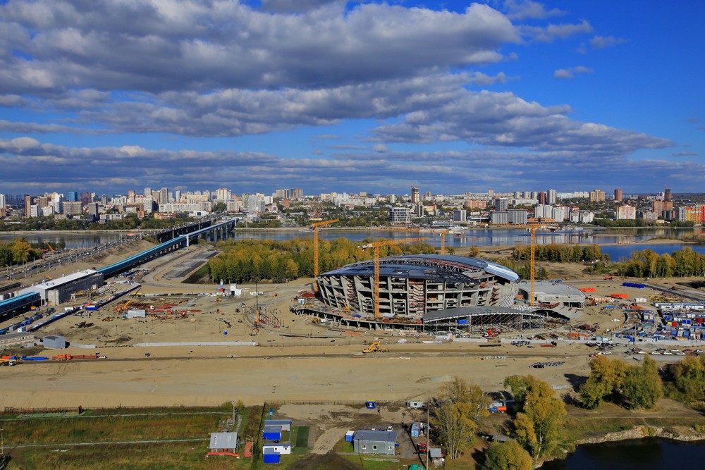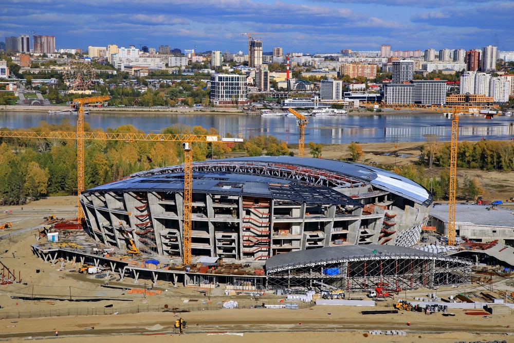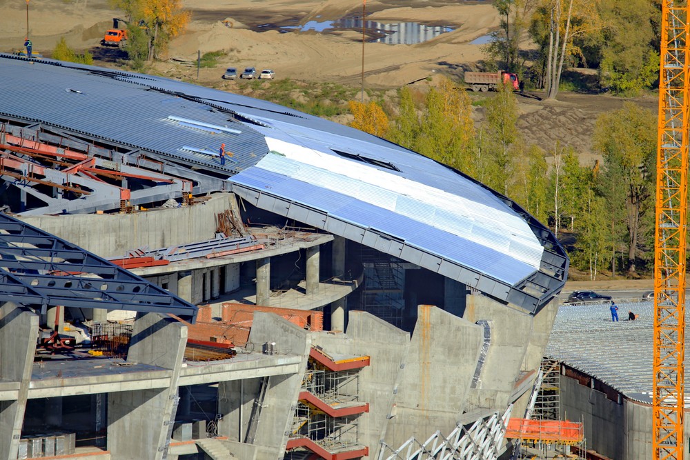 По словам Ивана Шмидта, на сегодня полностью готов железобетонный каркас арены, смонтирована кровля и фасад малых арен, закончены перекрытия основной арены и подведены наружные сети отопления. Монтаж металлоконструкций периферийной зоны и основной арены выполнили на 91%, огнезащиту металлоконструкций — на 80%, укладку профлиста — на 66%. Начался монтаж фасада большой арены, билетных касс и зон досмотра. Договор с подрядчиком по кровле заключили, он должен приступить к работам с 15 октября.
