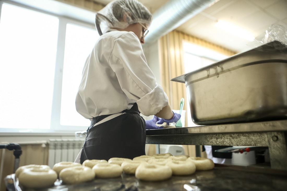 Технологический процесс организован по строгим стандартам. В цехе выделены отдельные зоны для работы с яйцами и десертами, есть оборудование для выпечки и жарки. Чтобы увеличить сроки хранения продукции без консервантов, используют модифицированную газовую среду.