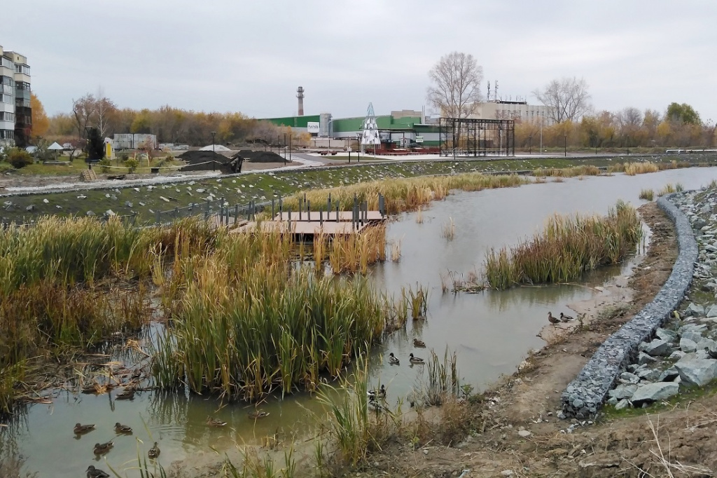 Общая площадь прибрежной территории — 4,2 гектара. Уже выполнена большая часть предусмотренных проектом работ. Откосы водоёма укрепили, в северной его части разместили пять утиных домиков. Всего по условиям контракта их на озере должно быть 11. Птицы ещё не привыкли к новому жилищу и предпочитают прятаться в зарослях камыша.