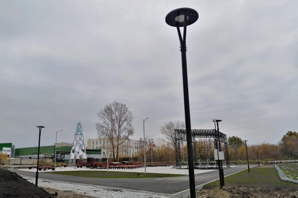 В южной части парка появилась площадка для массовых мероприятий, там поставили сцену и трибуны, рядом смонтировали стелу-ёлку, которая будет светиться. На берег завезли грунт для обустройства газонов. Осталось установить лавочки, качели, турникеты, теннисные столы, урны и велопарковки, а также арт-объект в виде объёмной надписи «эко ОБСКОЙ парк». Озеленение территории предусматривает посадку ив, берёз, калины, яблонь и клёнов.