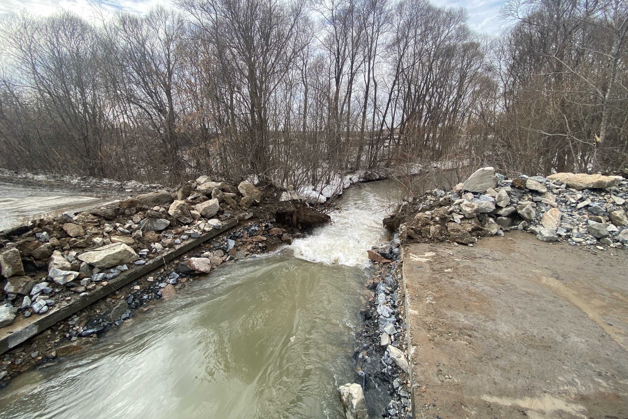 Дорогу у ЖК «Европейский берег» разрыли для пропуска воды в Плющиху